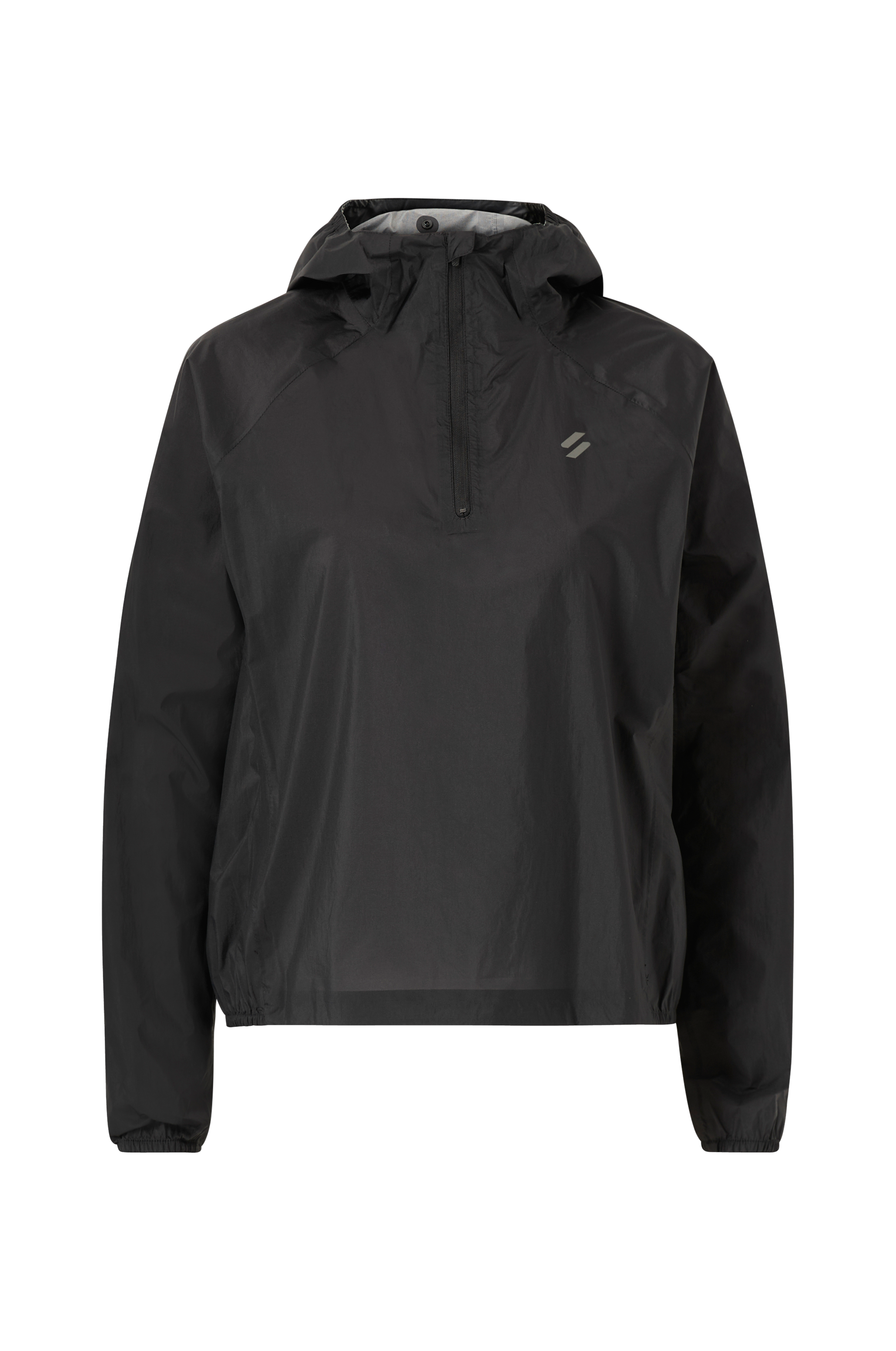 En lättviktig, vattentät och vindavvisande jacka för löpning och annan träning. Vattenpelare 10000 mm och andningsförmåga 10000 g/m2/24h. Fast huva, hög krage och kort dragkedja. Resår i ärmsluten och i sidorna nedtill. Något längre baktill. Reflexdetaljer.