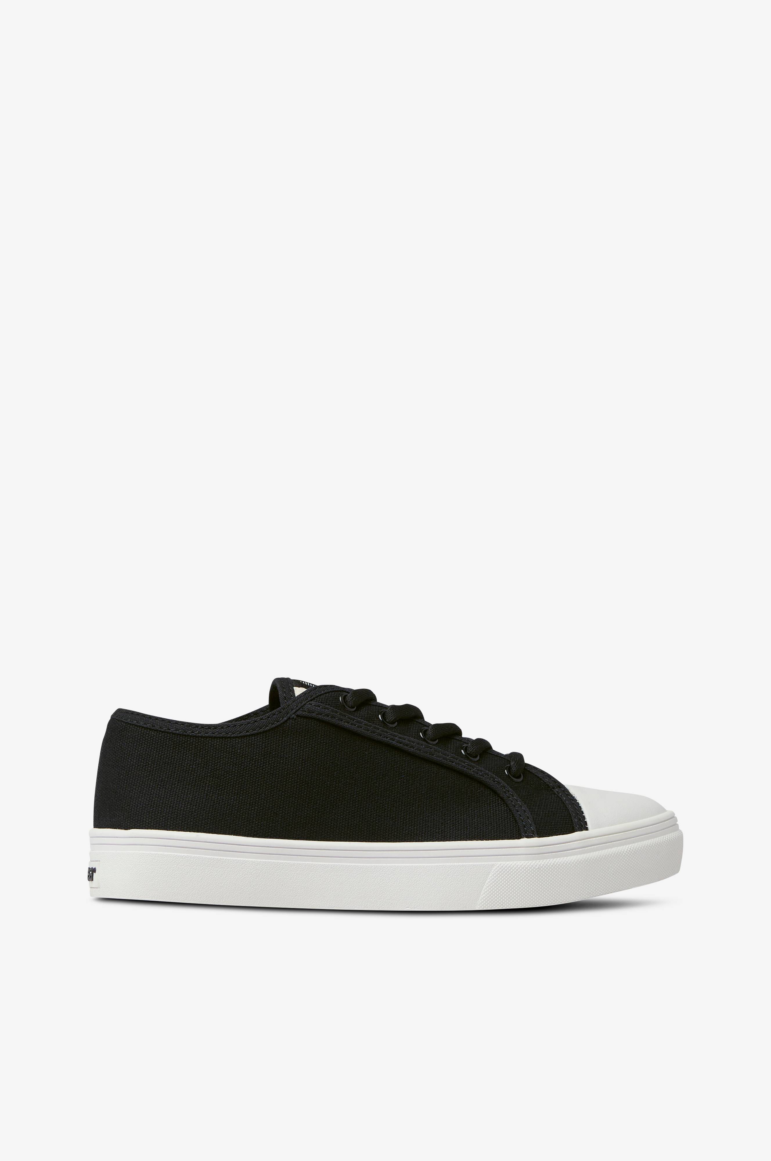 Sneakers i kraftig canvas med snörning i öljetterade hål. Logoband på plösen och förstärkt tå i skinn samt hög sulkant runt om.
