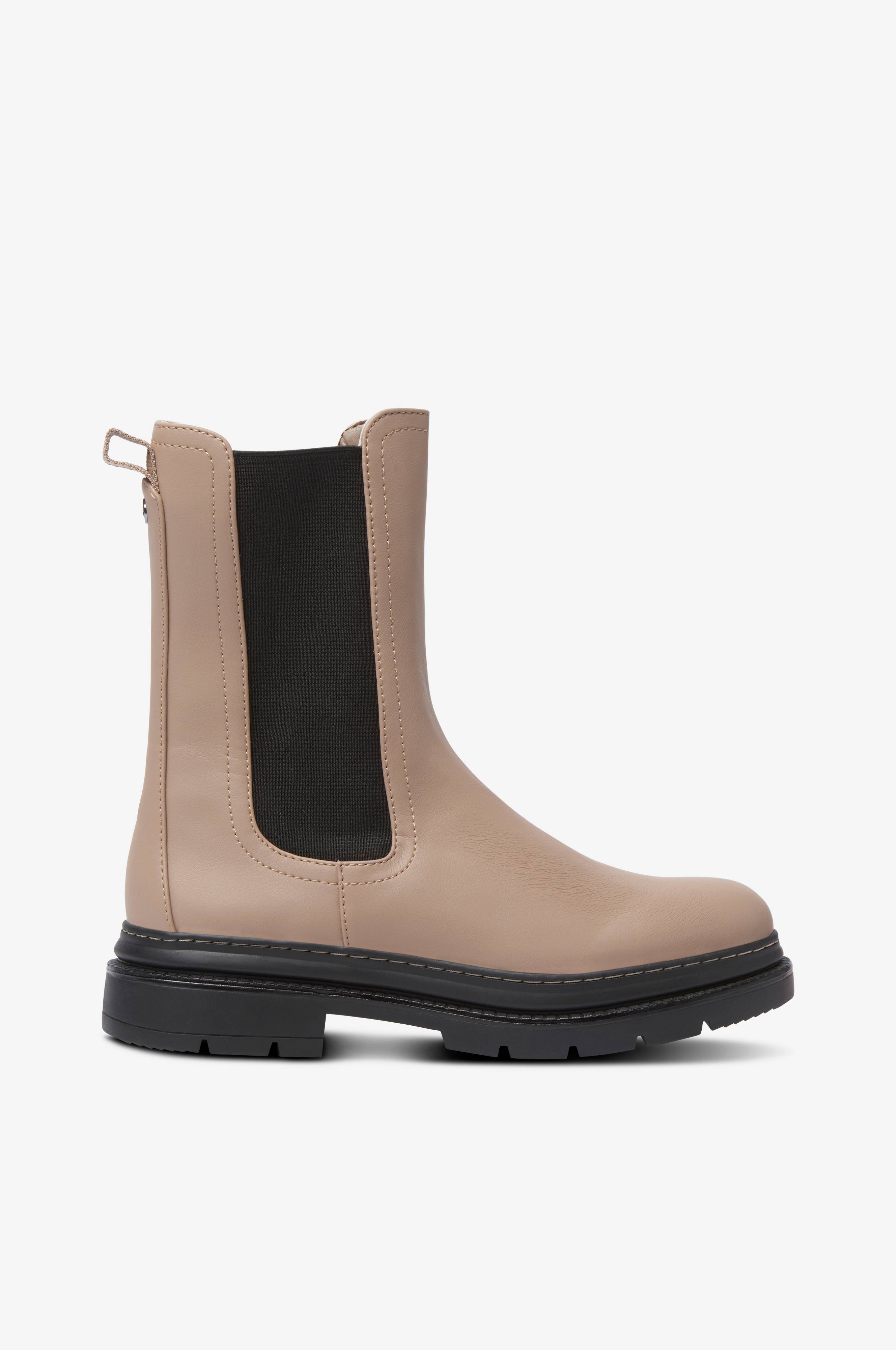 Boots i skinnimitation med resårinfällningar på båda sidor av skaftet. Vävd dragögla bak. Mjukstoppad Touch it-innersula som formar sig efter foten för maximal komfort. Yttersula i gummi. Skafthöjd 19 cm i stl 37.