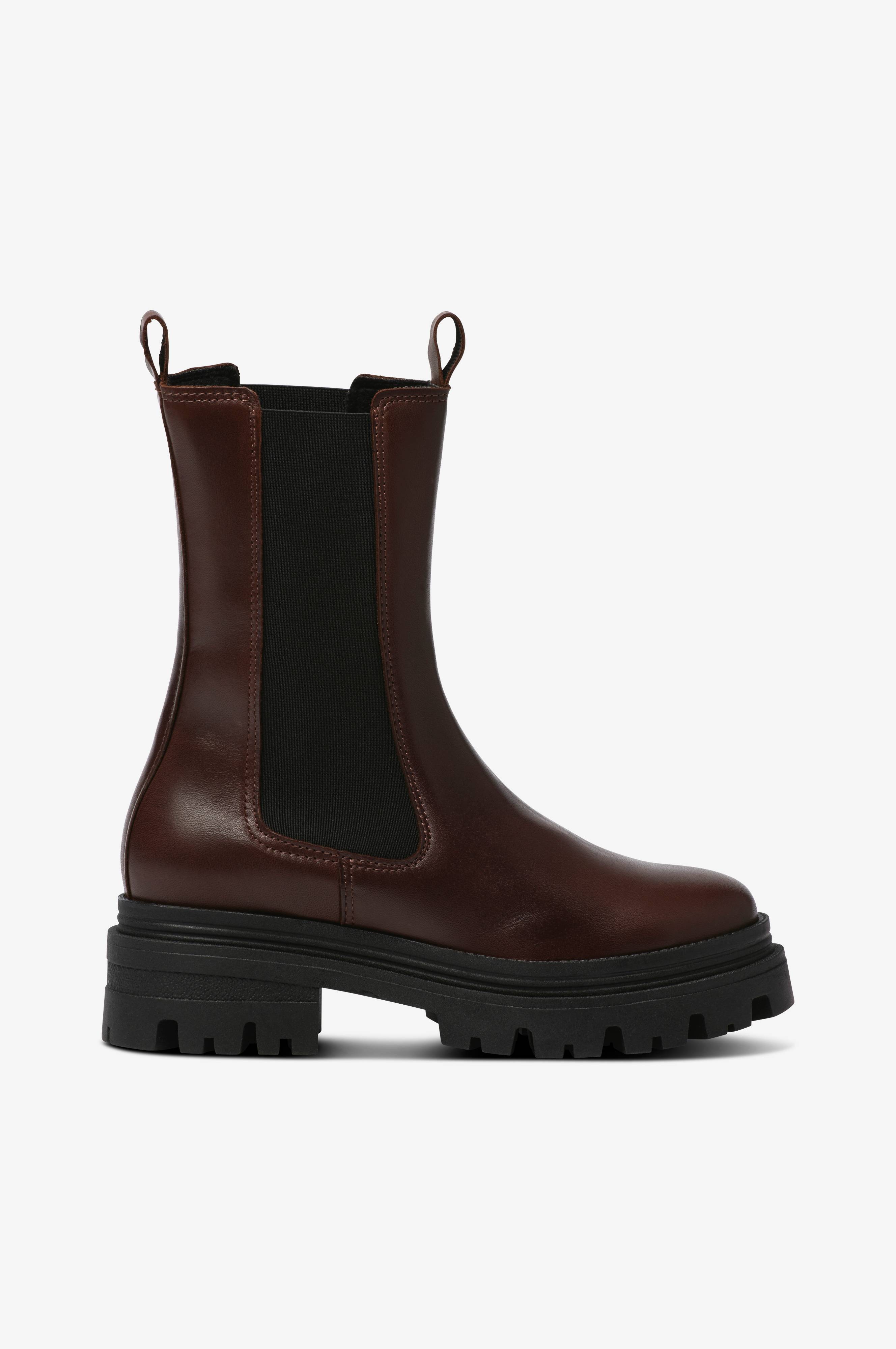 • Höga boots i skinn• Resårpaneler på skaftet• Draghälla fram och bak• Grov sula• Mjukt foder i velour• Skafthöjd: 21 cm i stl 37• Klackhöjd: 4,5 cm