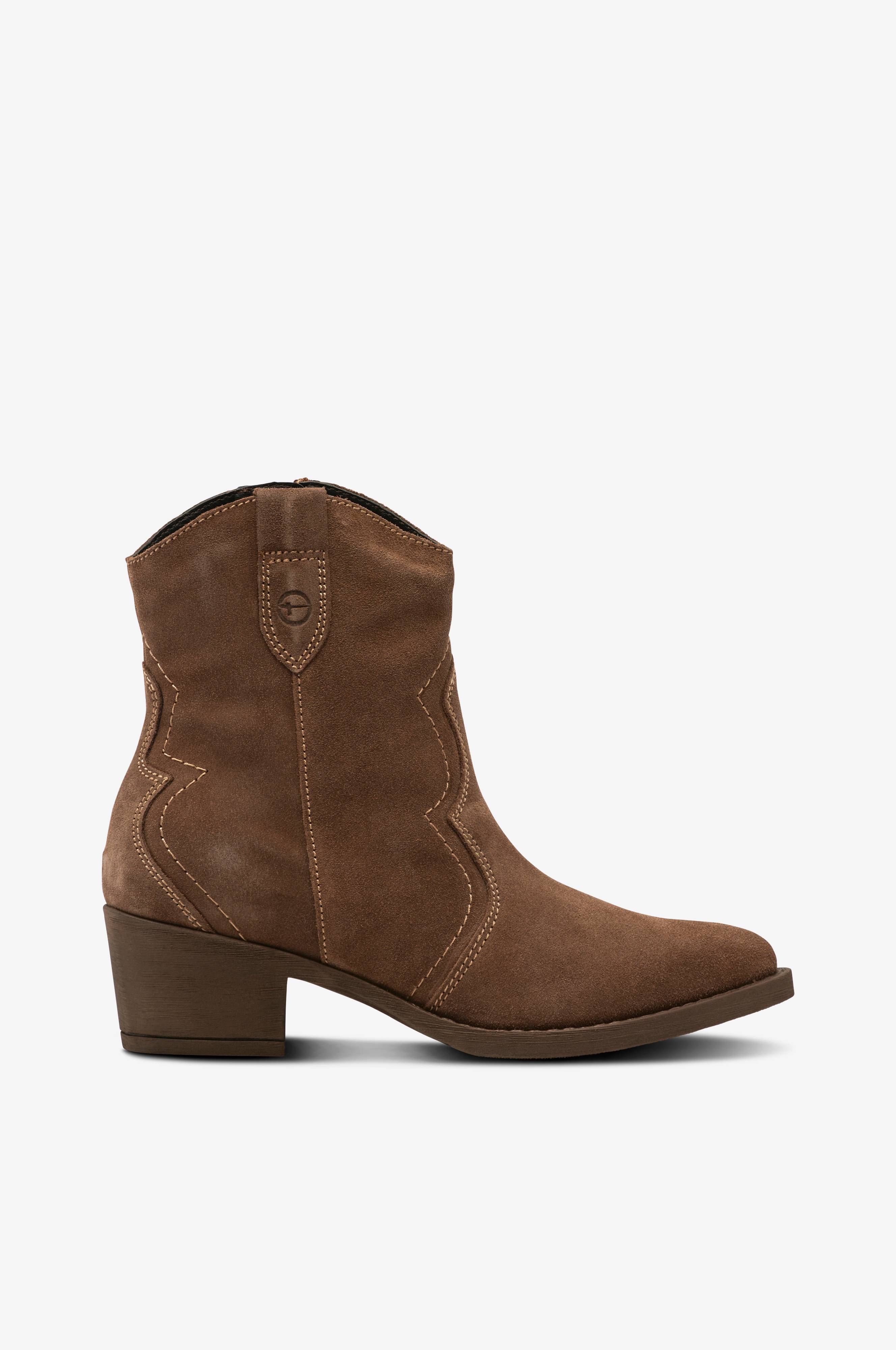 • Låga cowboystövlar i mocka med dekorativa sömmar • Spetsig tå • Dragkedja på insidan av skaftet • Textilfoder • Klackhöjd: 5 cm • Skafthöjd: 13 cm i stl 37
