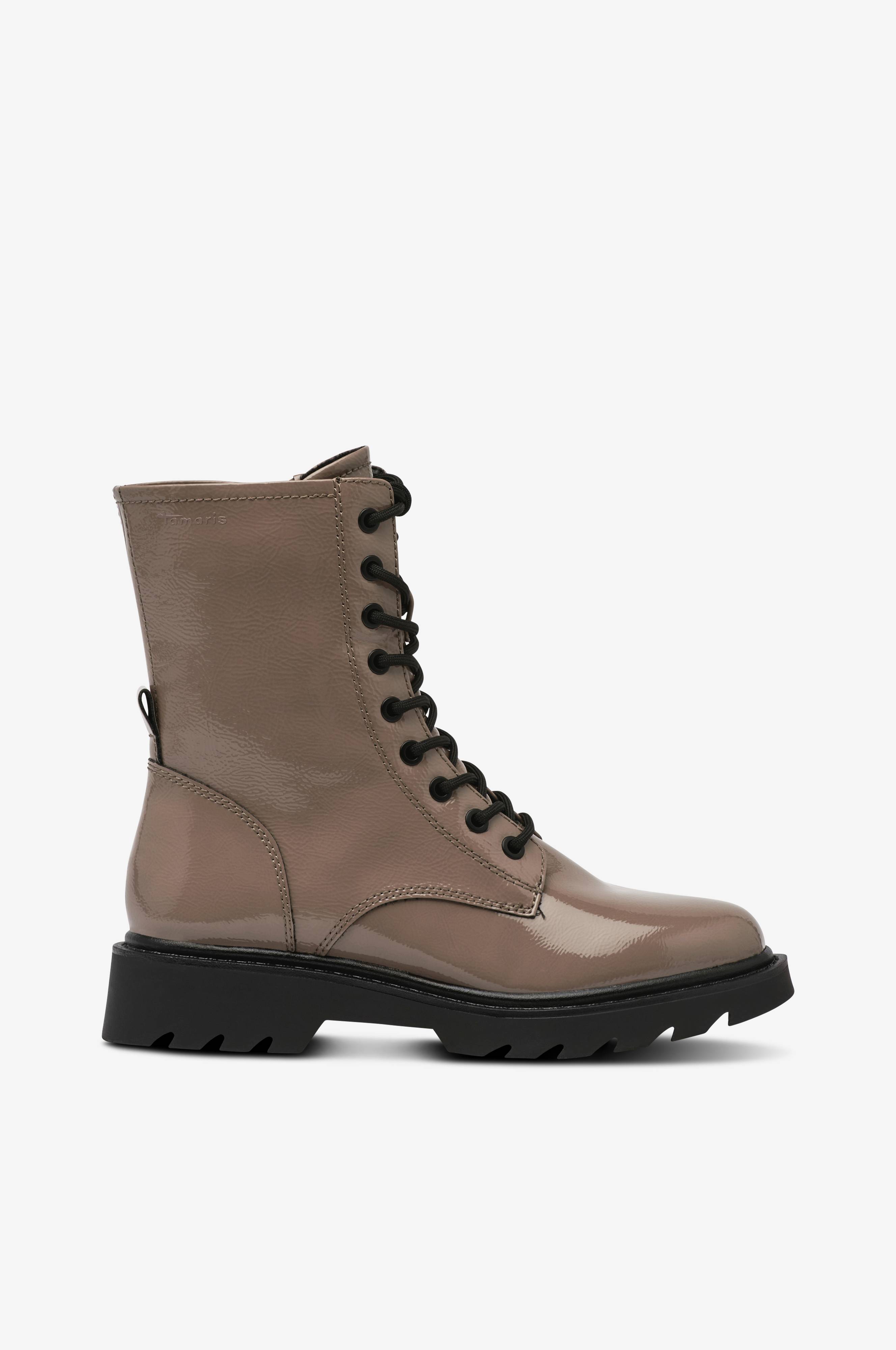 • Blank modell i skinnimitation • Snörning • Dragkedja på insidan av skaftet • Varmfodrade • Draghälla bak • Greppsäker, grovmönstrad sula • Klackhöjd: 3,5 cm