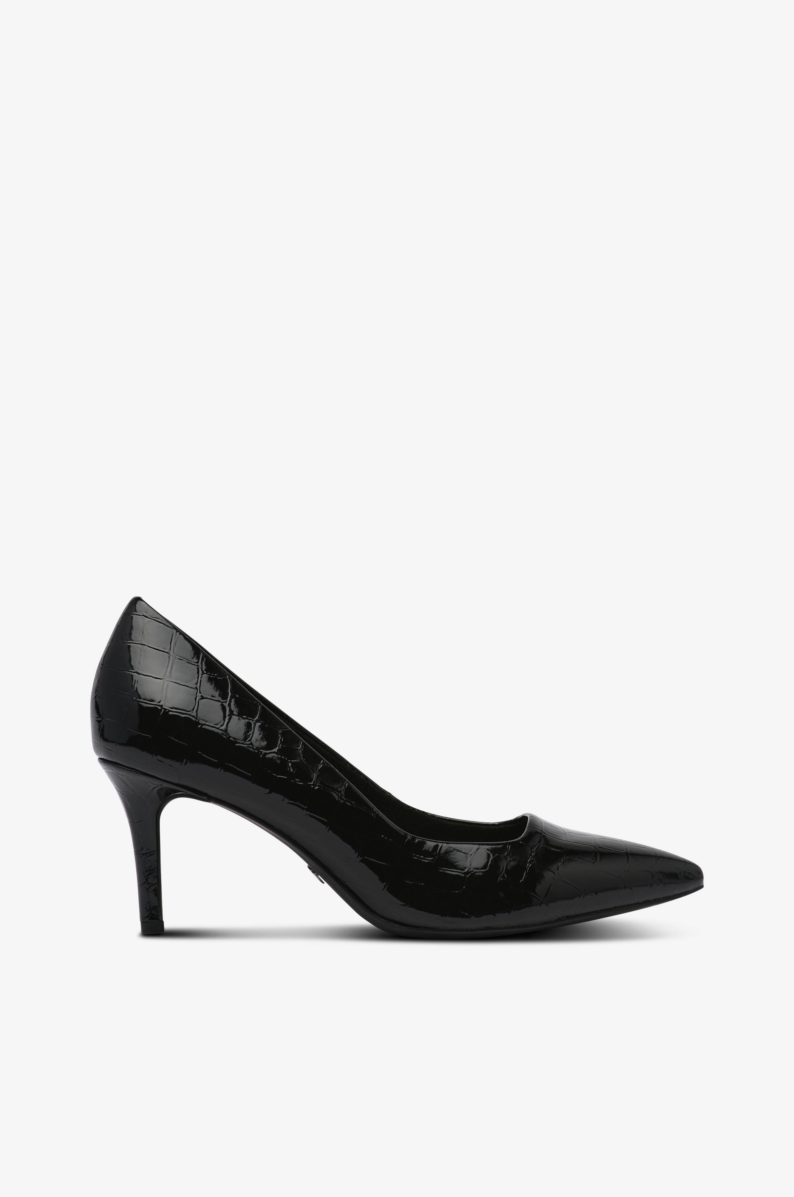 • Blank, krokodilmönstrad modell i skinnimitation• Spetsig tå• Smal klack• Mjukstoppad innersula• Klackhöjd: 7 cm