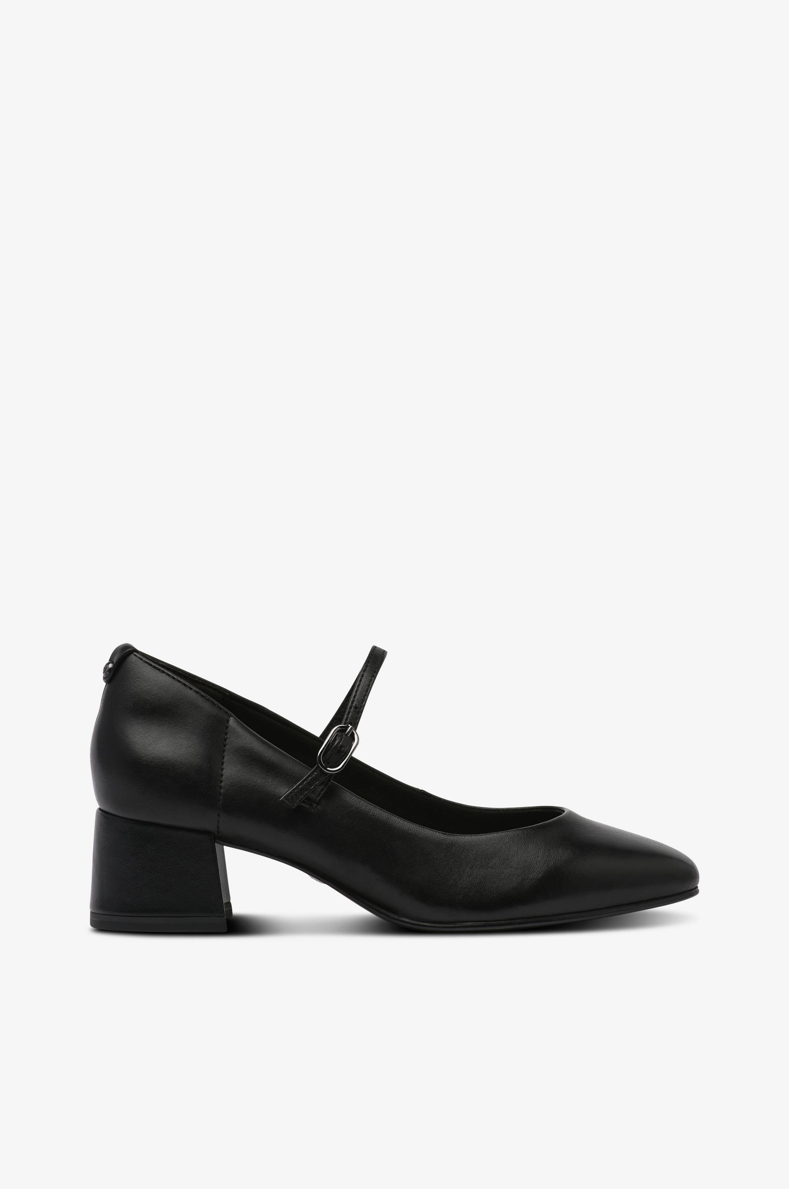 • Modell i skinn• Rundad tå• Elastisk, justerbar vristrem• Kantig klack• Mjukstoppad innersula• Klackhöjd: 5 cm
