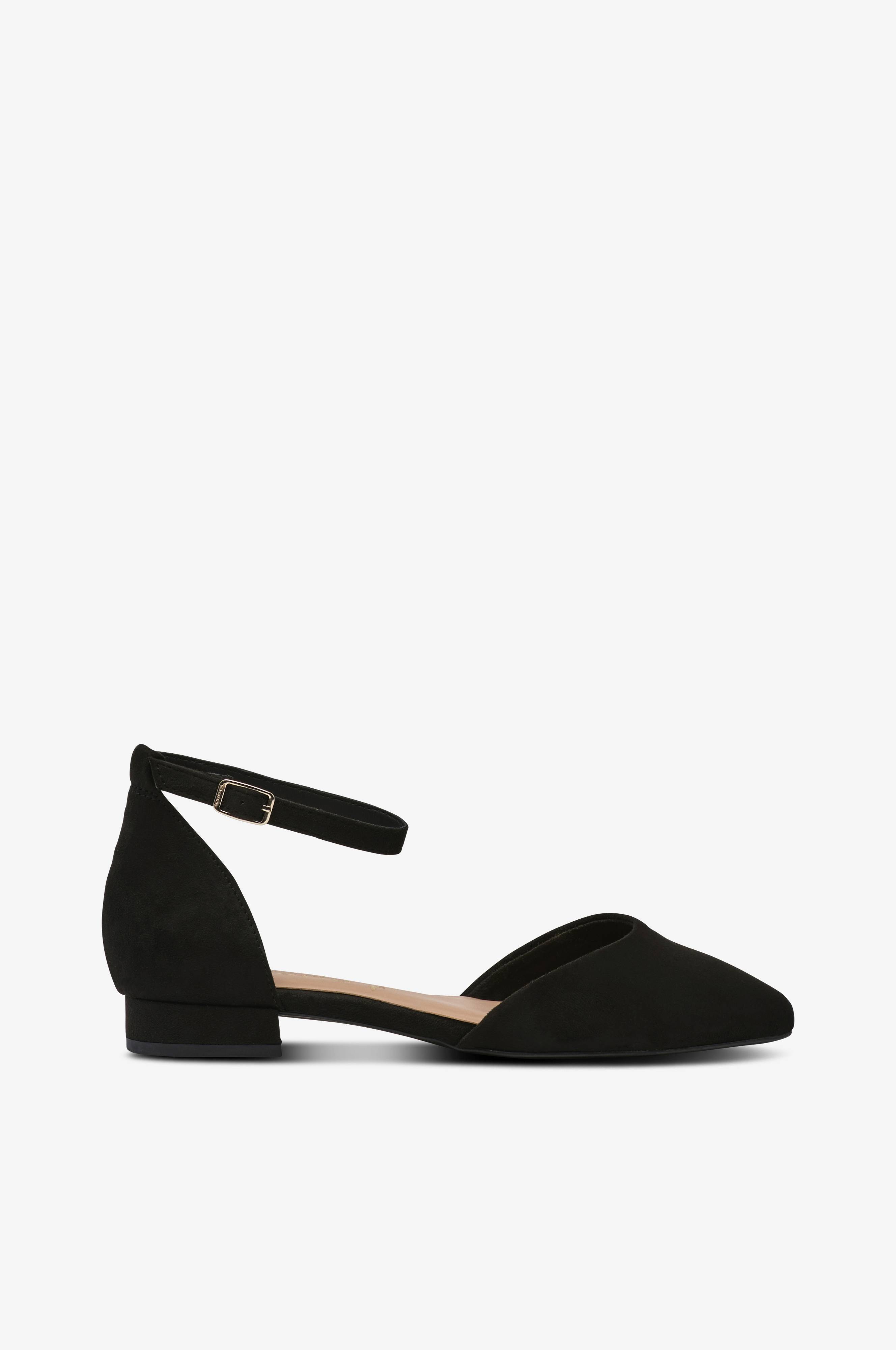 • Pumps i mockaimitation• Spetsig tåform• Justerbar ankelrem• Låg klack