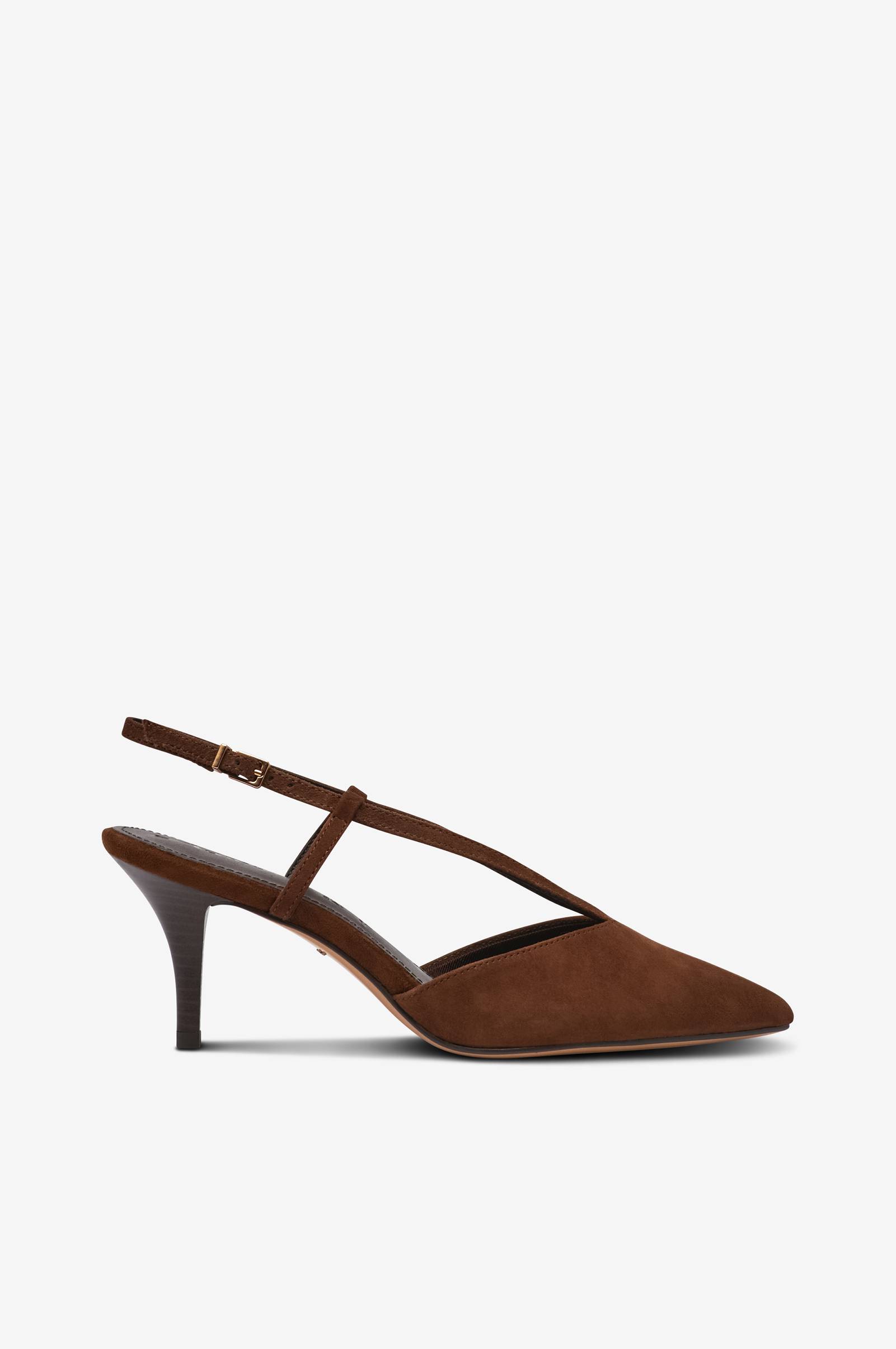 • Sandaletter i mocka• Spetsig tå• Smal klack• Justerbar rem vid ankeln• Klackhöjd: 6,5 cm