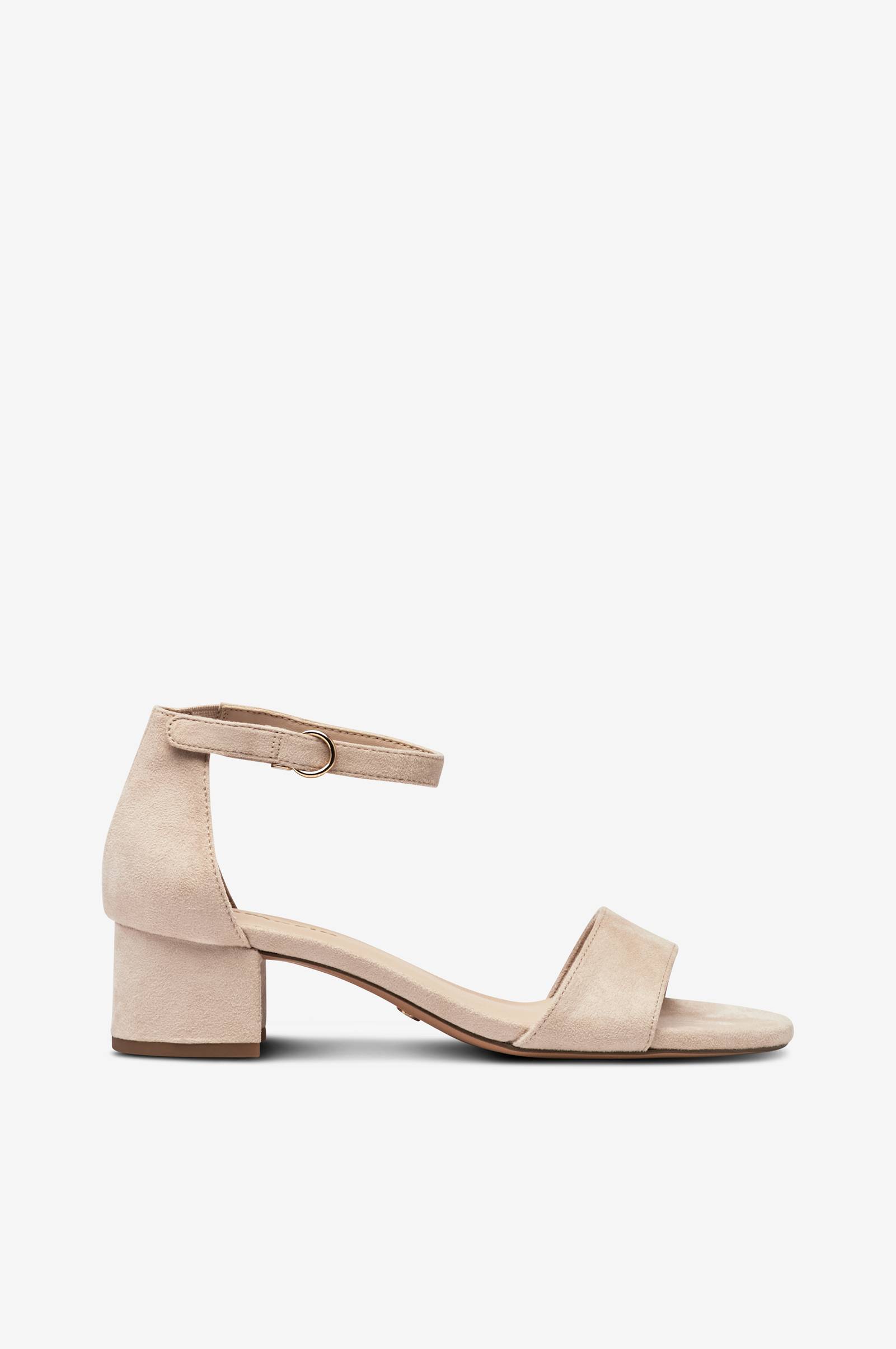 • Ovandel i textil• Justerbar rem vid ankeln med elastisk infästning• Mjukstoppad fotbädd• Textilfoder• Klädd klack• Klackhöjd: 4,5 cm