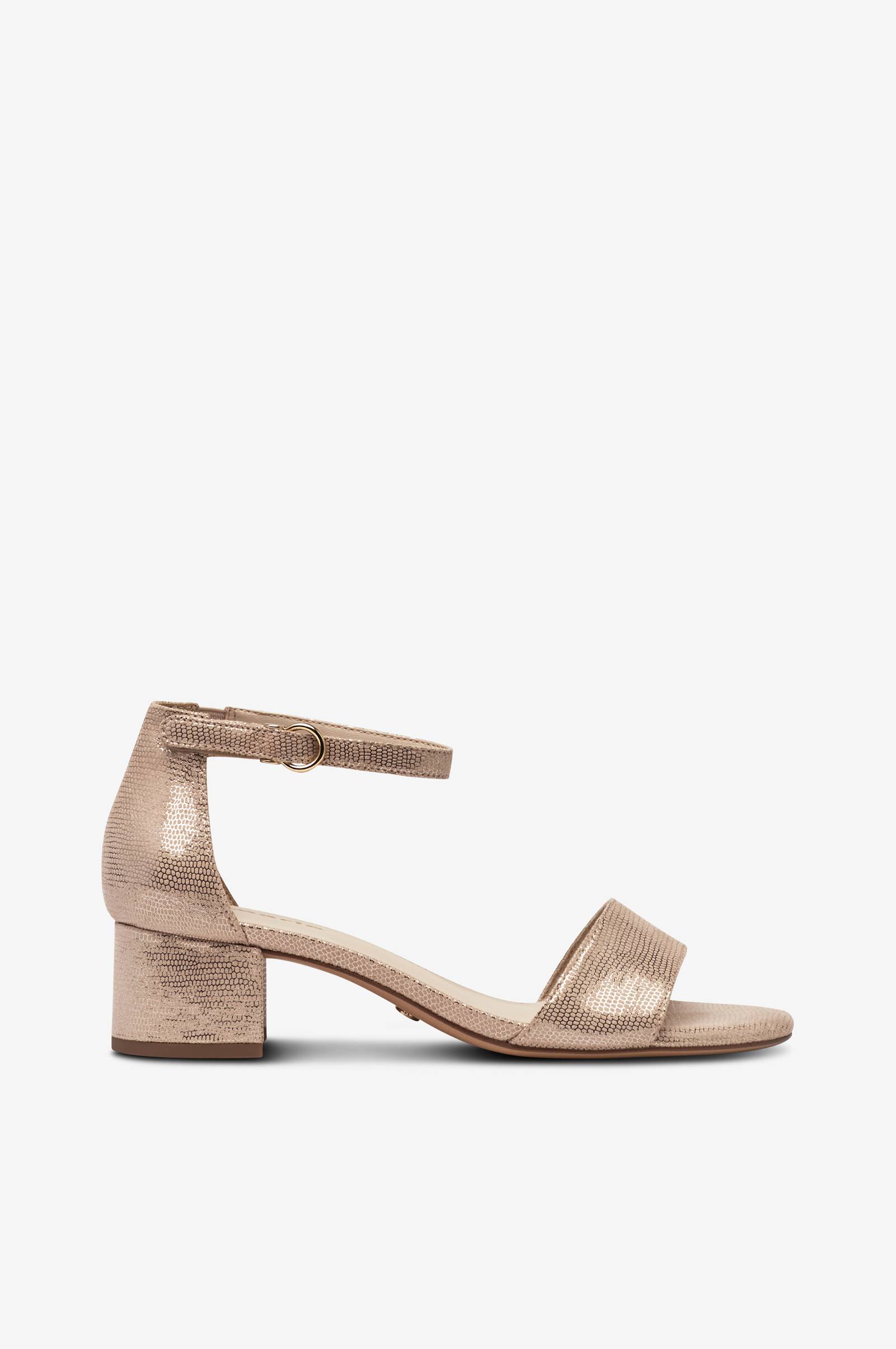• Ovandel i textil• Justerbar rem vid ankeln med elastisk infästning• Mjukstoppad fotbädd• Textilfoder• Klädd klack• Klackhöjd: 4,5 cm