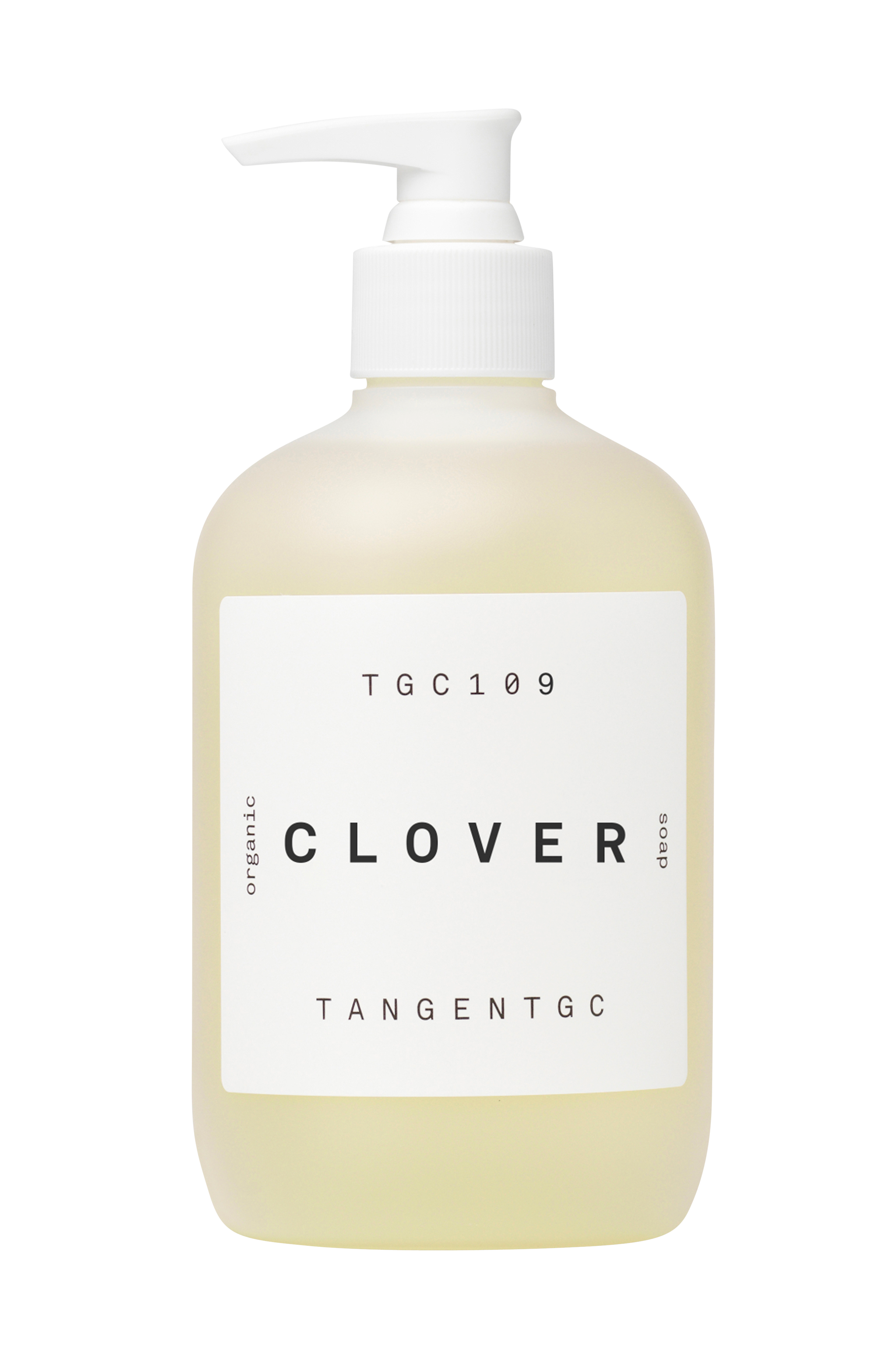 Clover tvål är en parfymerad, organisk tvål, tillverkad med rena vegetabiliska oljor. Humlor lockas för att suga från den vita klövern, och dras dit av klöverns eleganta doft. Klöver blommar hela sommaren; dess blommiga signatur - nytt gräs och nektar - är verkligen sommarens doft.