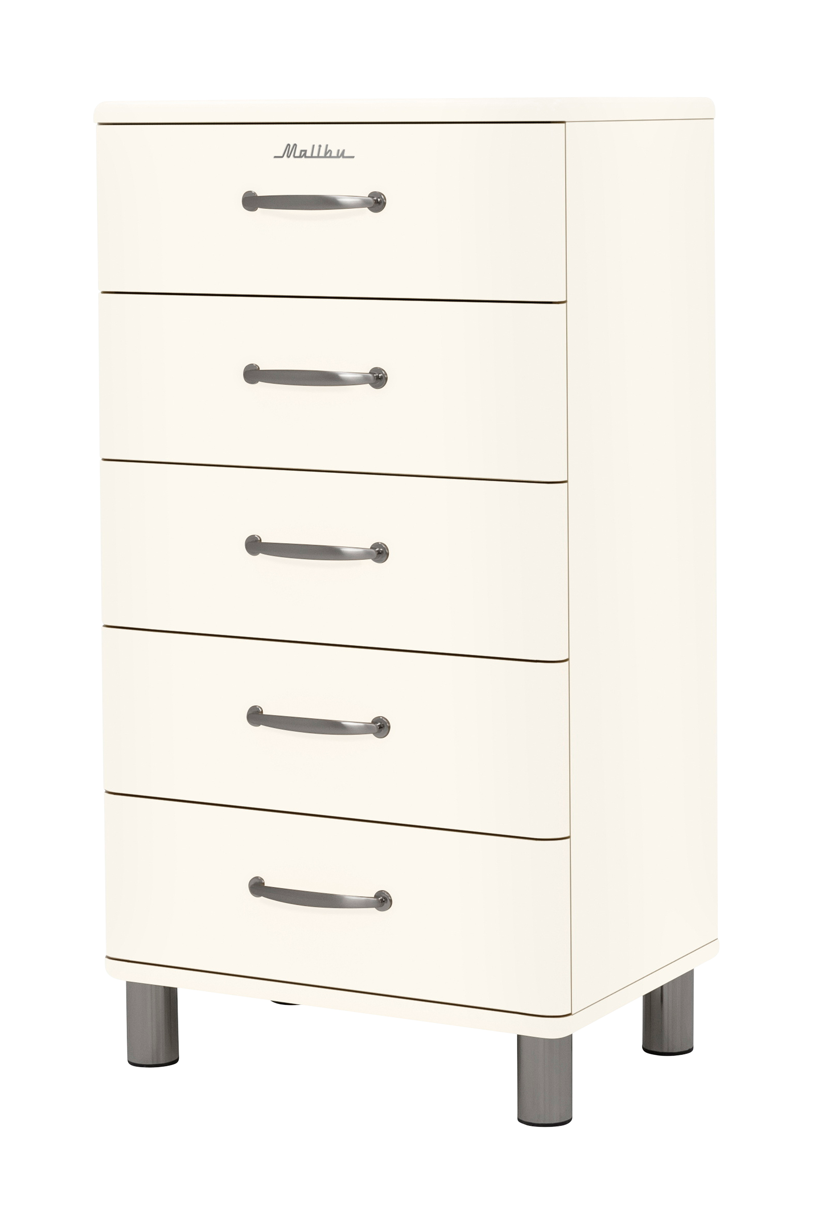 Malibu är tillverkad i Sverige i lackad MDF & spånskiva, hantag och ben matt nickel. Malibu ger stora förvaringsmöjligheter.