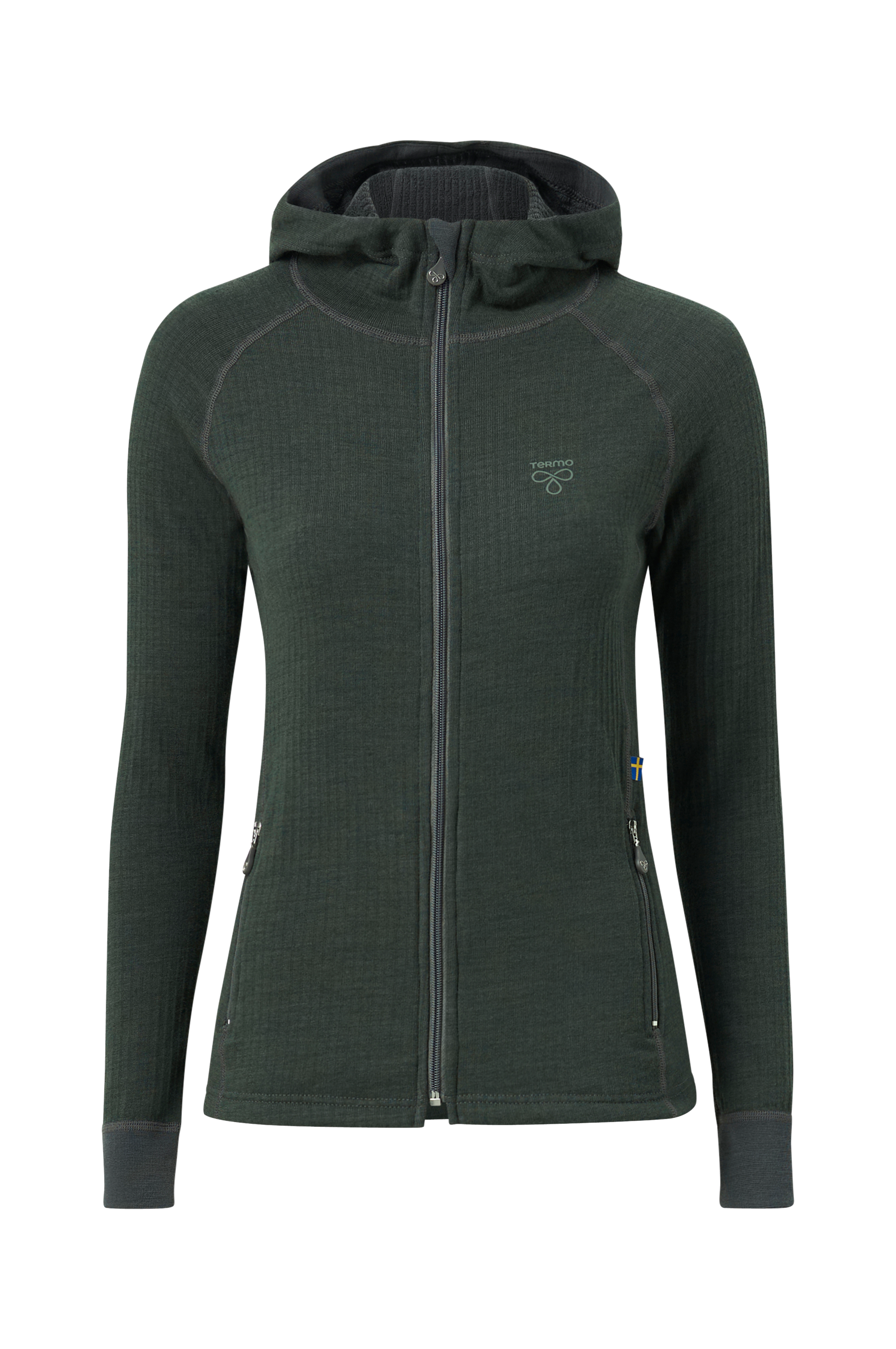 En kanalstickad underställströja med tvålagersfunktion. Polypropylen närmast kroppen som transporterar bort fukt och håller dig torr. Yttre lagret består av merinoull. Huva, dragkedja och två dragkedjefickor fram. Lång ärm med liten kant som smiter åt i ärmsluten. Mjuka sömmar för att motverka skav. Kvaliteten är mjuk och skönt följsam med bekväm stretch.