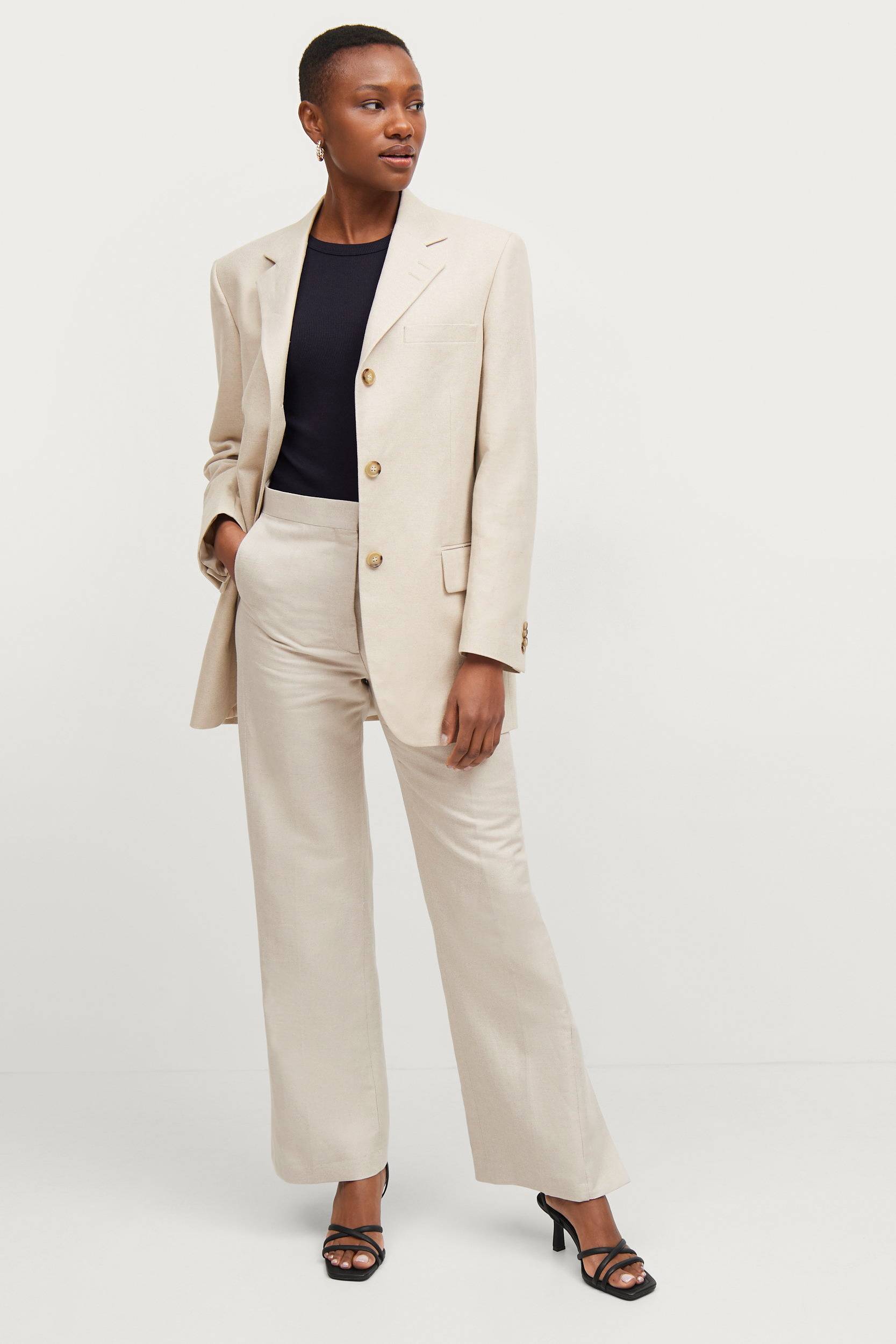 • Byxor i linnemix• Normal passform• Medelhög midja• Raka ben• Dold hysk- och hakestängning• Sidfickor• Två bakfickor• Slitsar i bensluten• Full längd