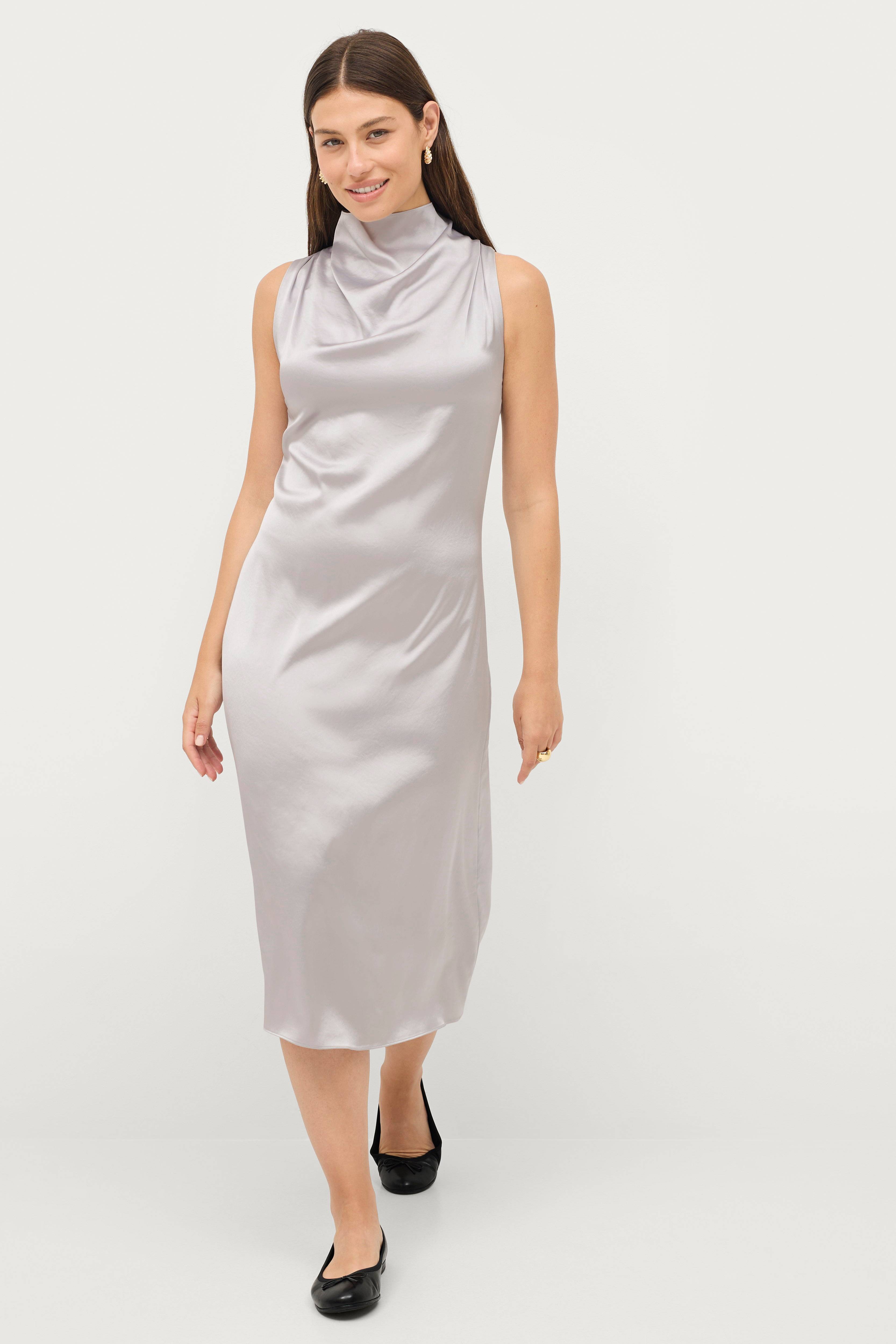• Ärmlös klänning i satin