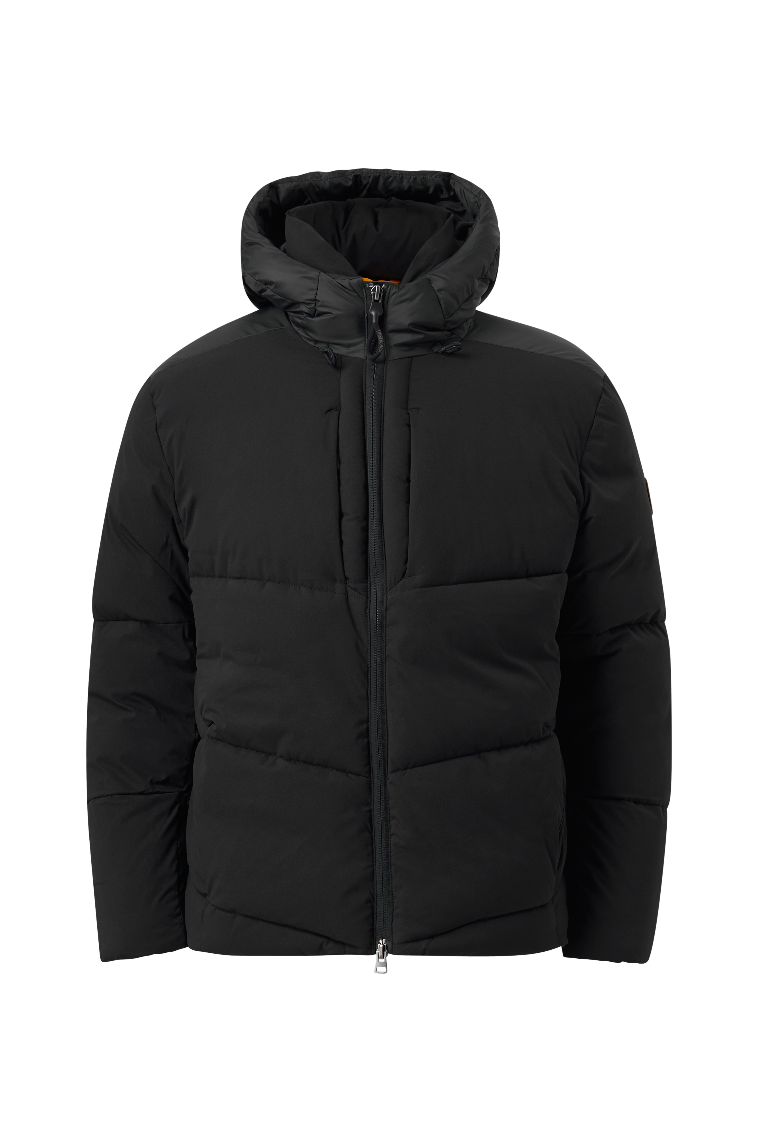 • Quiltad, vadderad vinterjacka • Vattenavvisande, stretchigt yttertyg • Fast huva • Hög, vadderad krage • Tvåvägsdragkedja • Tre ytterfickor med dragkedja • En innerficka i mesh • En innerficka med dragkedja • Resår i ärmsluten • Längd: 71 cm i storlek M