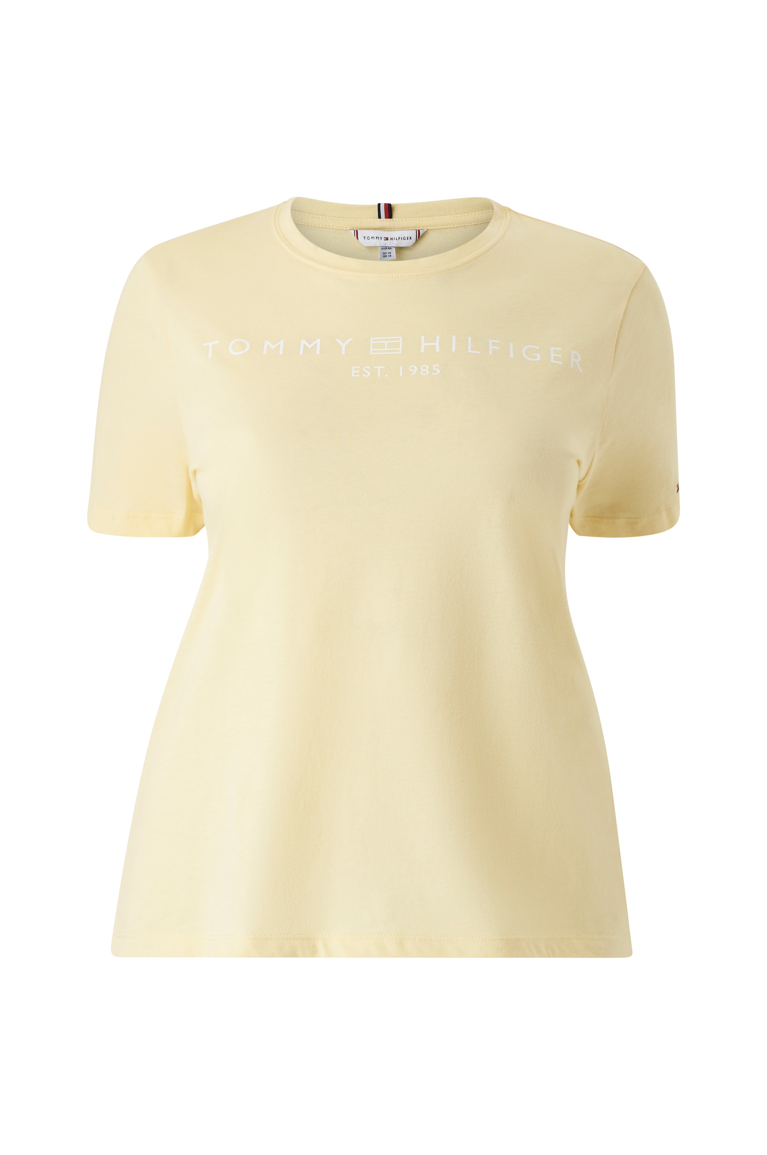 • Plusstorlekar• Rak modell med kort ärm• Tryck på bröstet• Ribbad rund hals