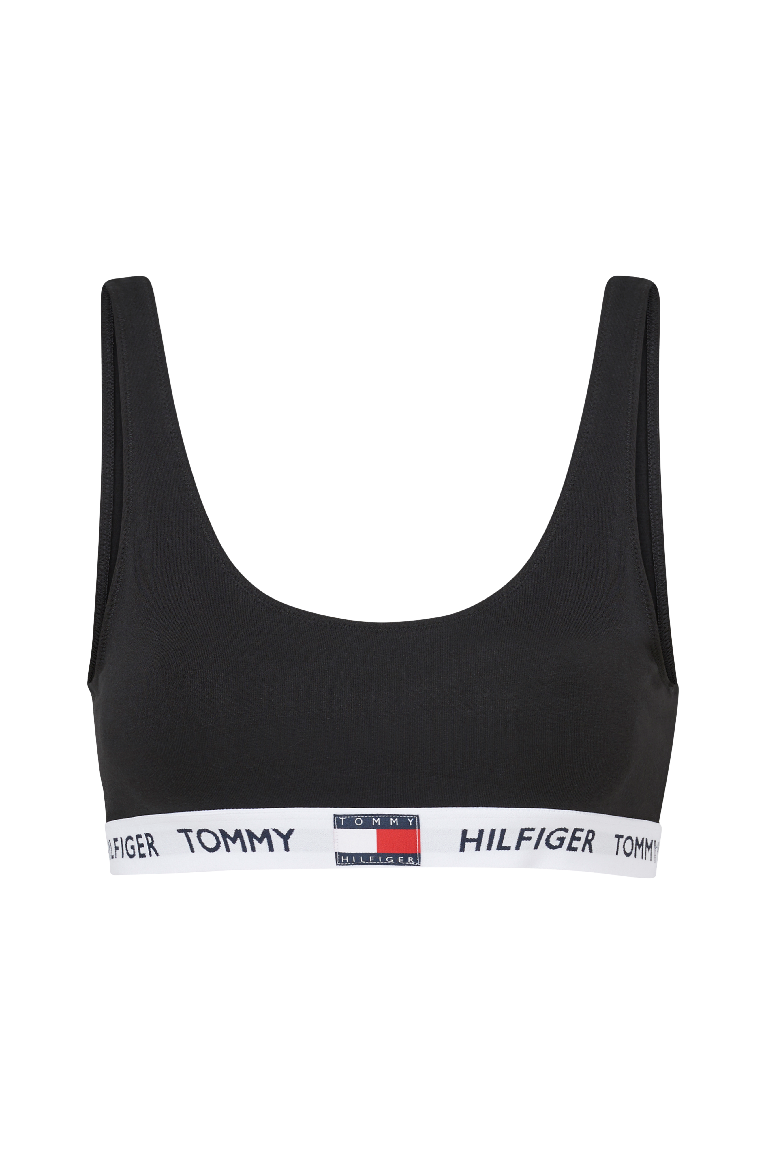 Bh-topp från Tommy Hilfiger i bomullstrikå med bred resår med logo nedtill. Fodrad front.