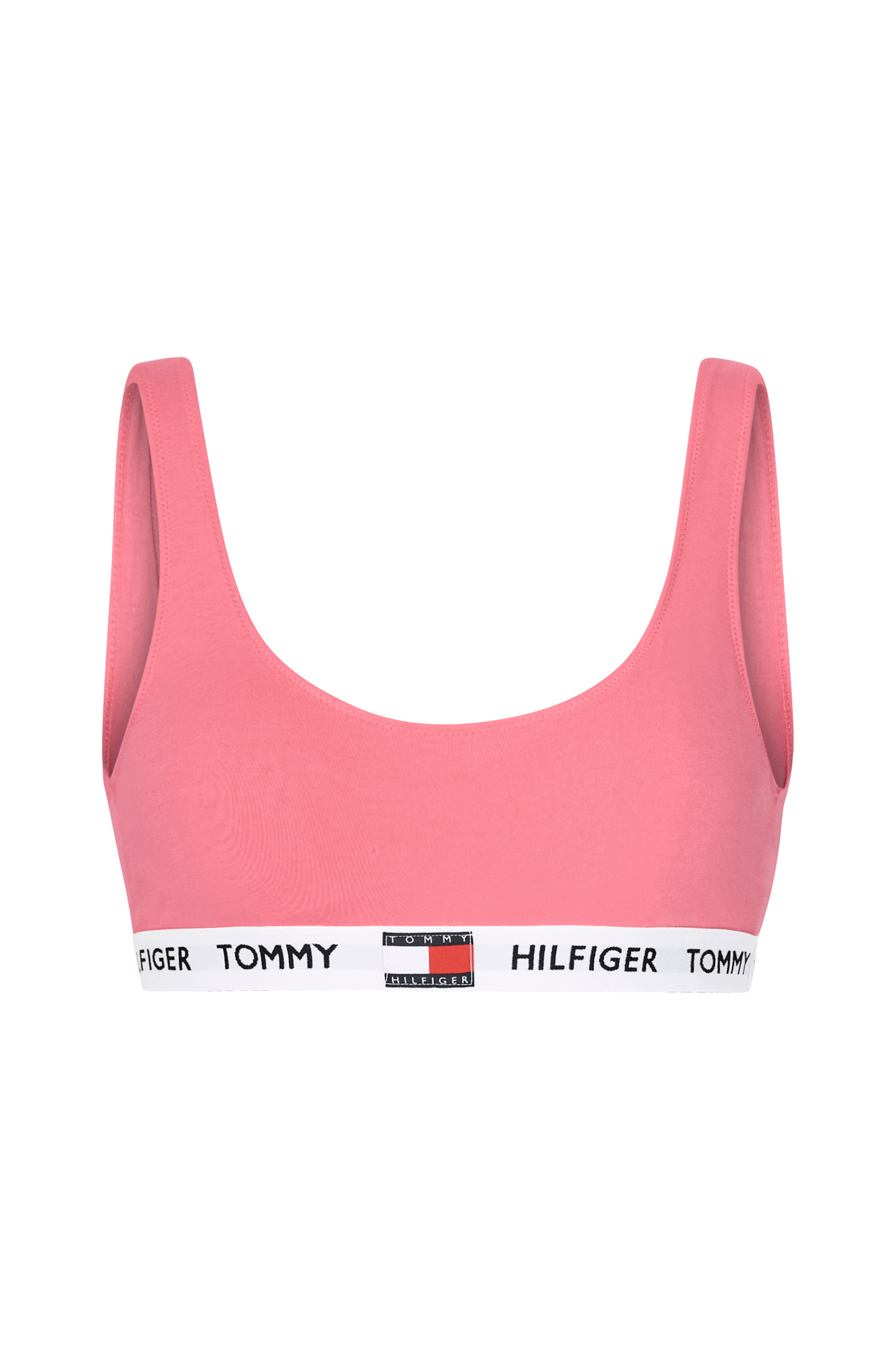 Bh-topp från Tommy Hilfiger i bomullstrikå med bred resår med logo nedtill. Fodrad front.