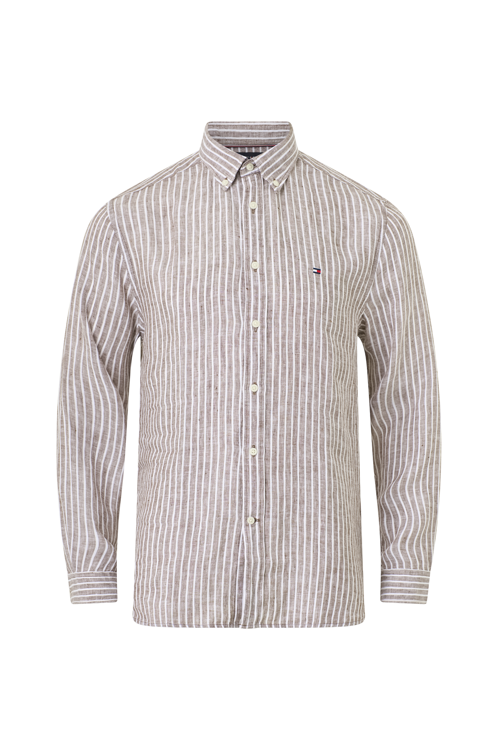 • Randig skjorta i linne• Button down-krage• Liten, broderad logga på bröstet
