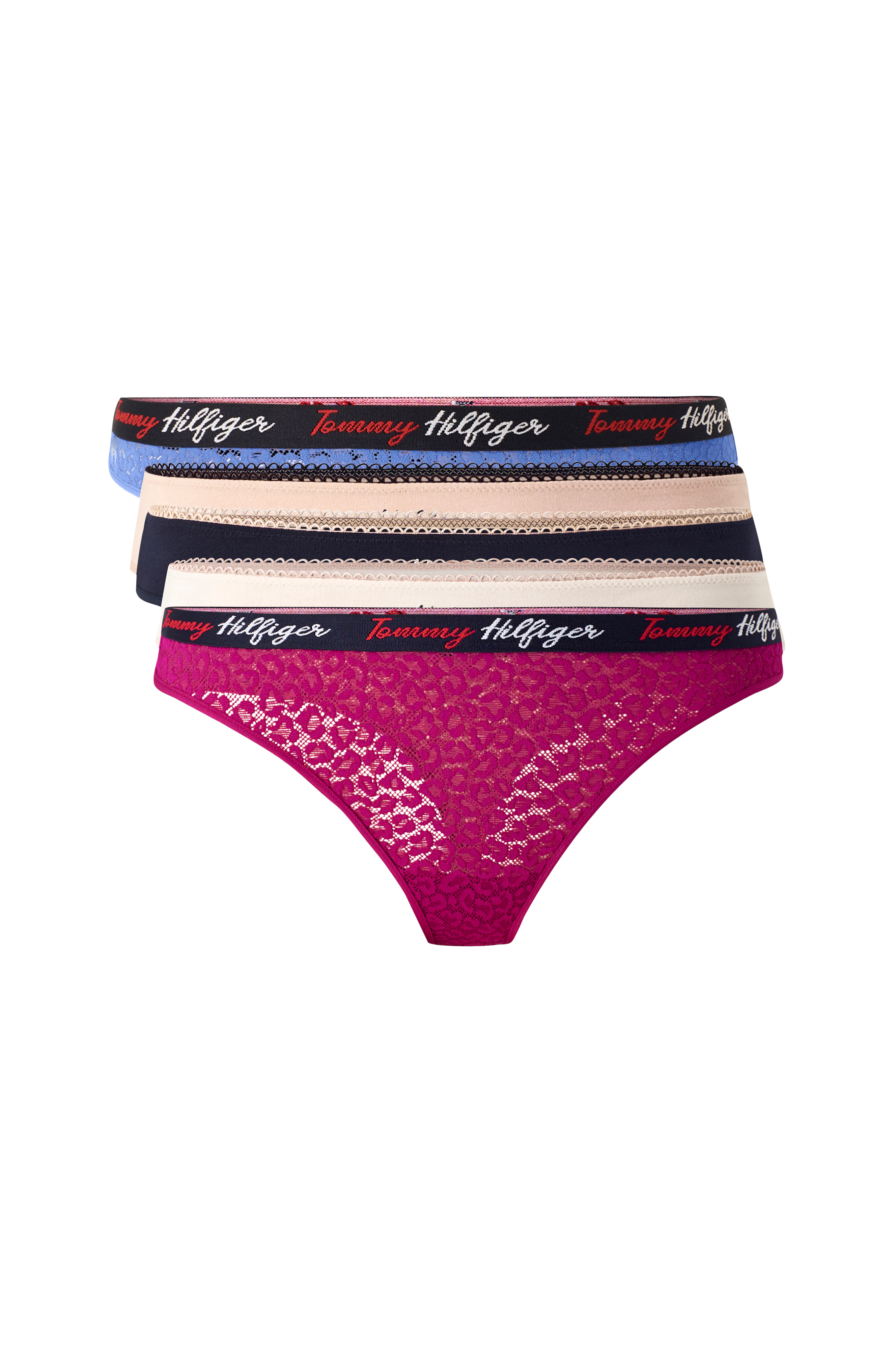 • Tre stringtrosor i bomullstrikå• Två stringtrosor i spets• Fodrad gren