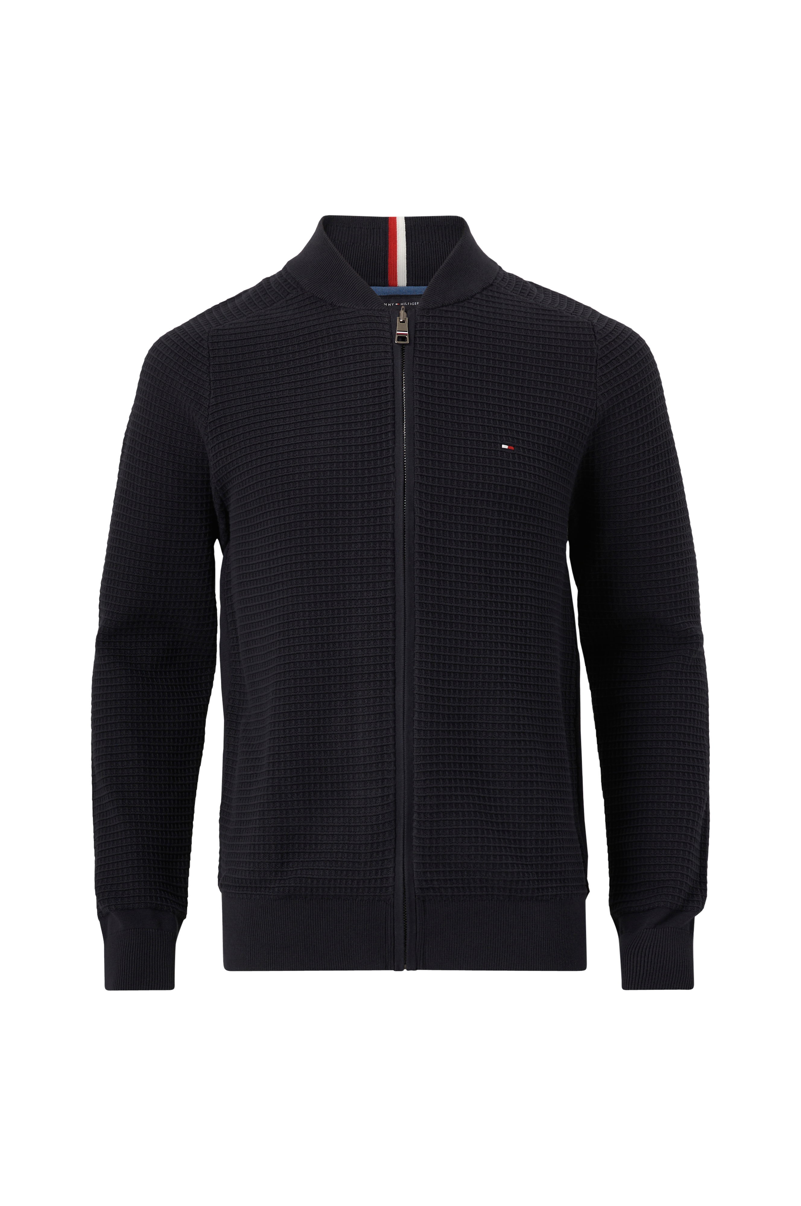 • Finstickad tröja med rutigt strukturmönster • Ribbad krage • Dragkedja • Ribbmuddar i ärmsluten och nedtill • Produkten innehåller ekologisk bomull som är odlad utan kemiska bekämpningsmedel, konstgödsel och genmodifierade grödor (GMO). Det innebär en mer hälsosam arbetsmiljö för bönder och bättre jordmån.