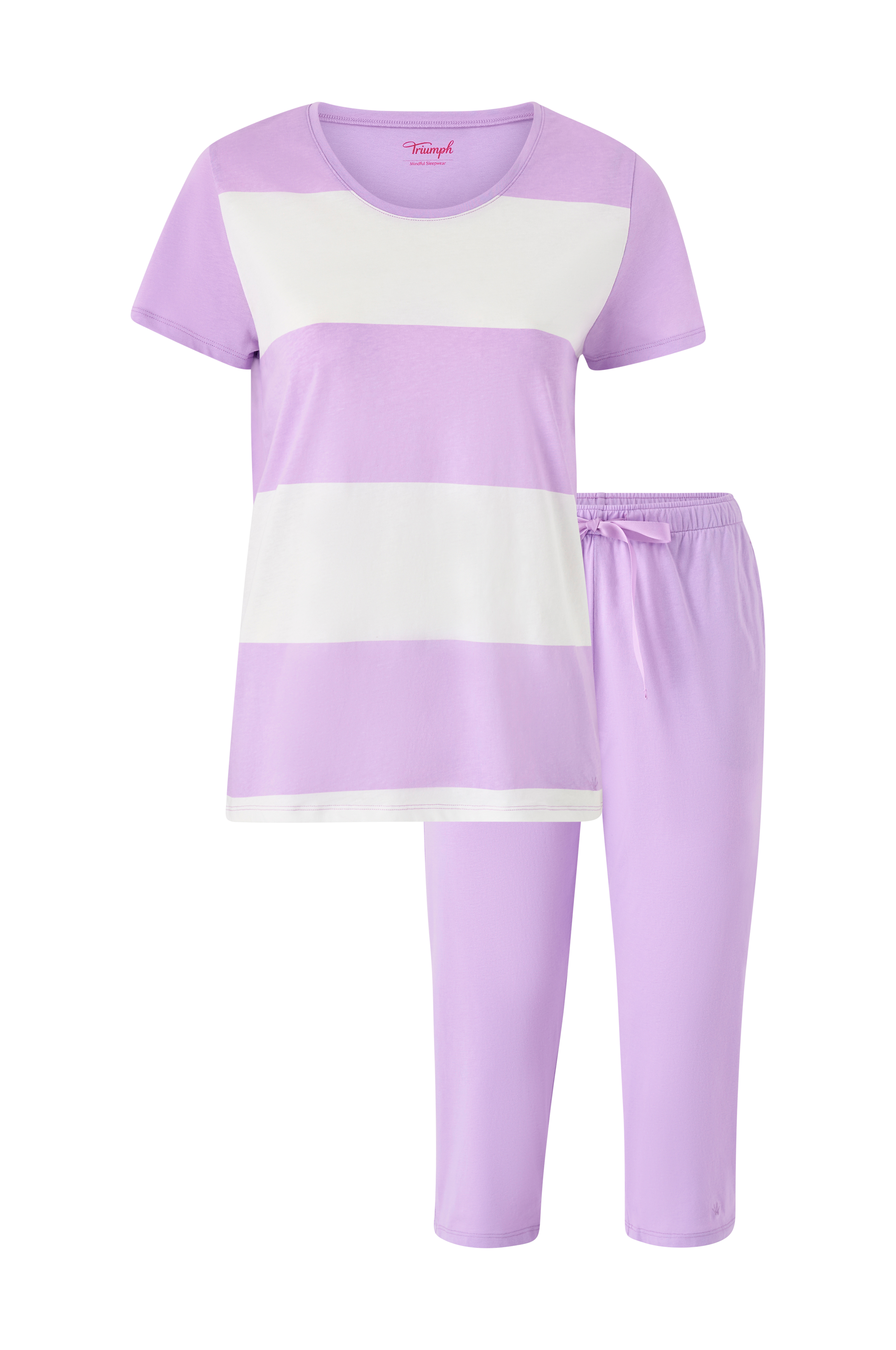 • Tvådelat set i bomullstrikå • Kortärmad t-shirt • Vadlånga byxor med dragsko i midjan • Produkten är certifierad enligt STANDARD 100 by OEKO-TEX®. Certifieringen garanterar att produkten är testad och fri från ämnen som kan vara skadliga för hälsan och miljön. Licensnummer & testinstitut: 93.0.3130 HOHENSTEIN HTTI