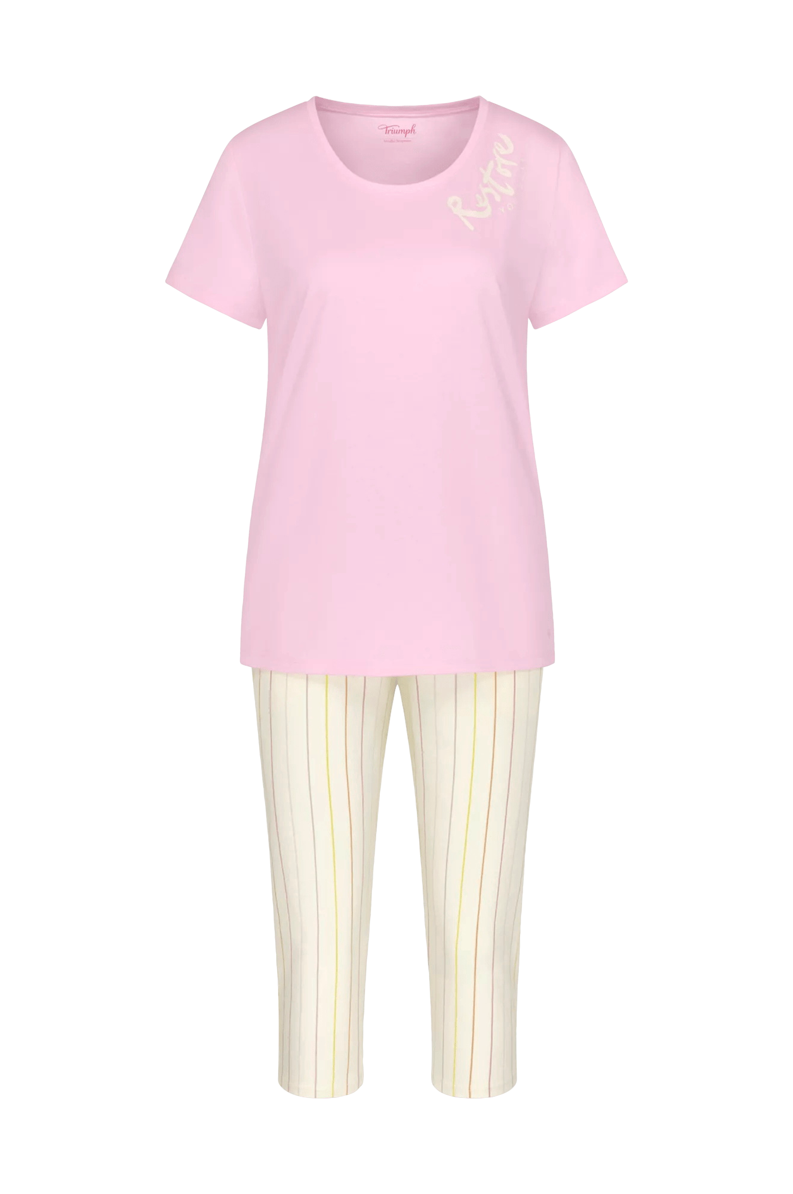 • Tvådelat set i bomullstrikå • Kortärmad t-shirt • Vadlånga byxor med dragsko i midjan • Produkten är certifierad enligt STANDARD 100 by OEKO-TEX®. Certifieringen garanterar att produkten är testad och fri från ämnen som kan vara skadliga för hälsan och miljön. Licensnummer & testinstitut: 93.0.3130 HOHENSTEIN HTTI