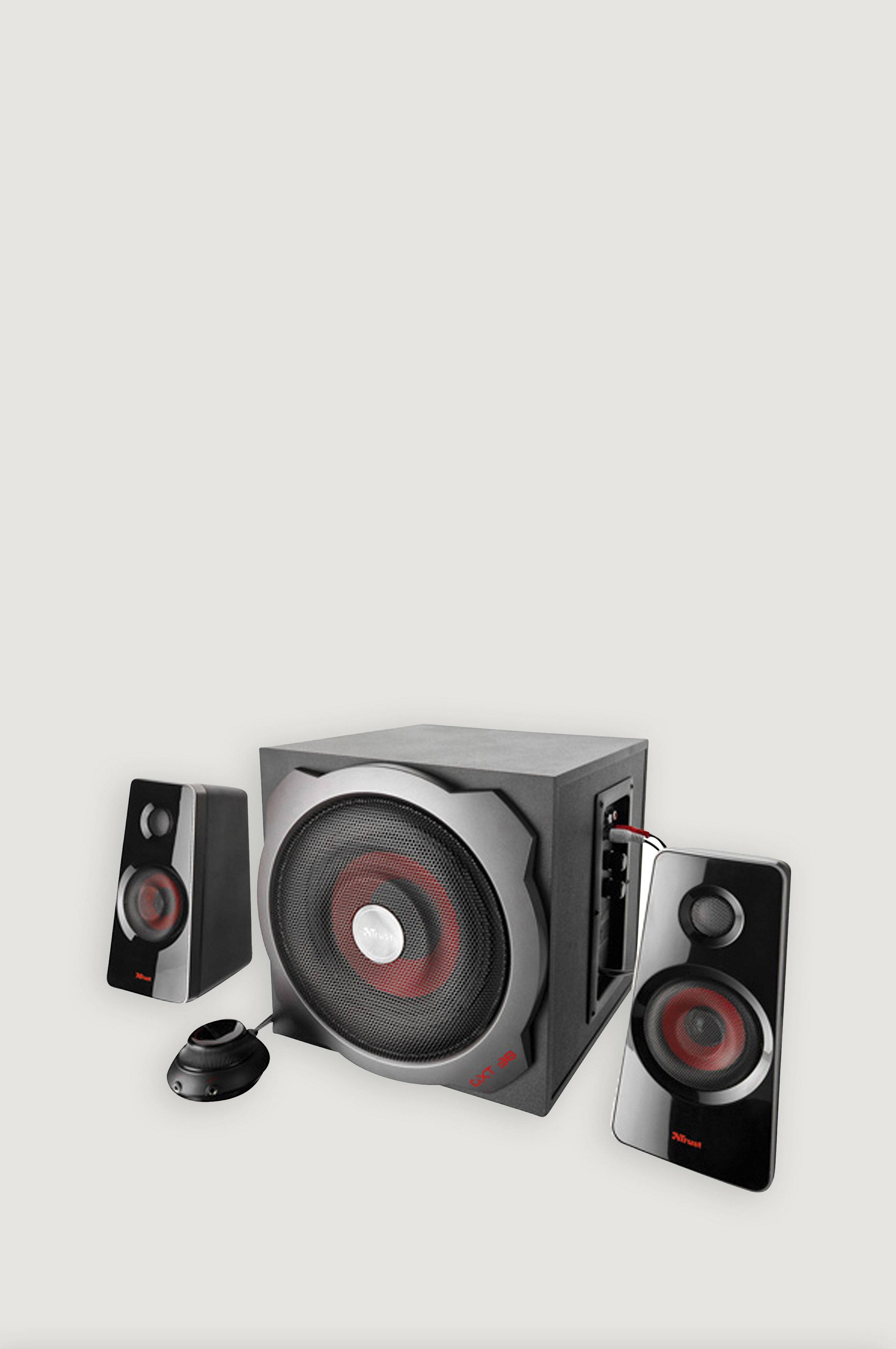 2,1 högtalarset inklusive subwoofer med en total RMS-effekt på 60 watt, kompatibel med PC, Wii, Sony PlayStation 3 och Xbox 360. Ljudet är av hög kvalitet med djup bas.