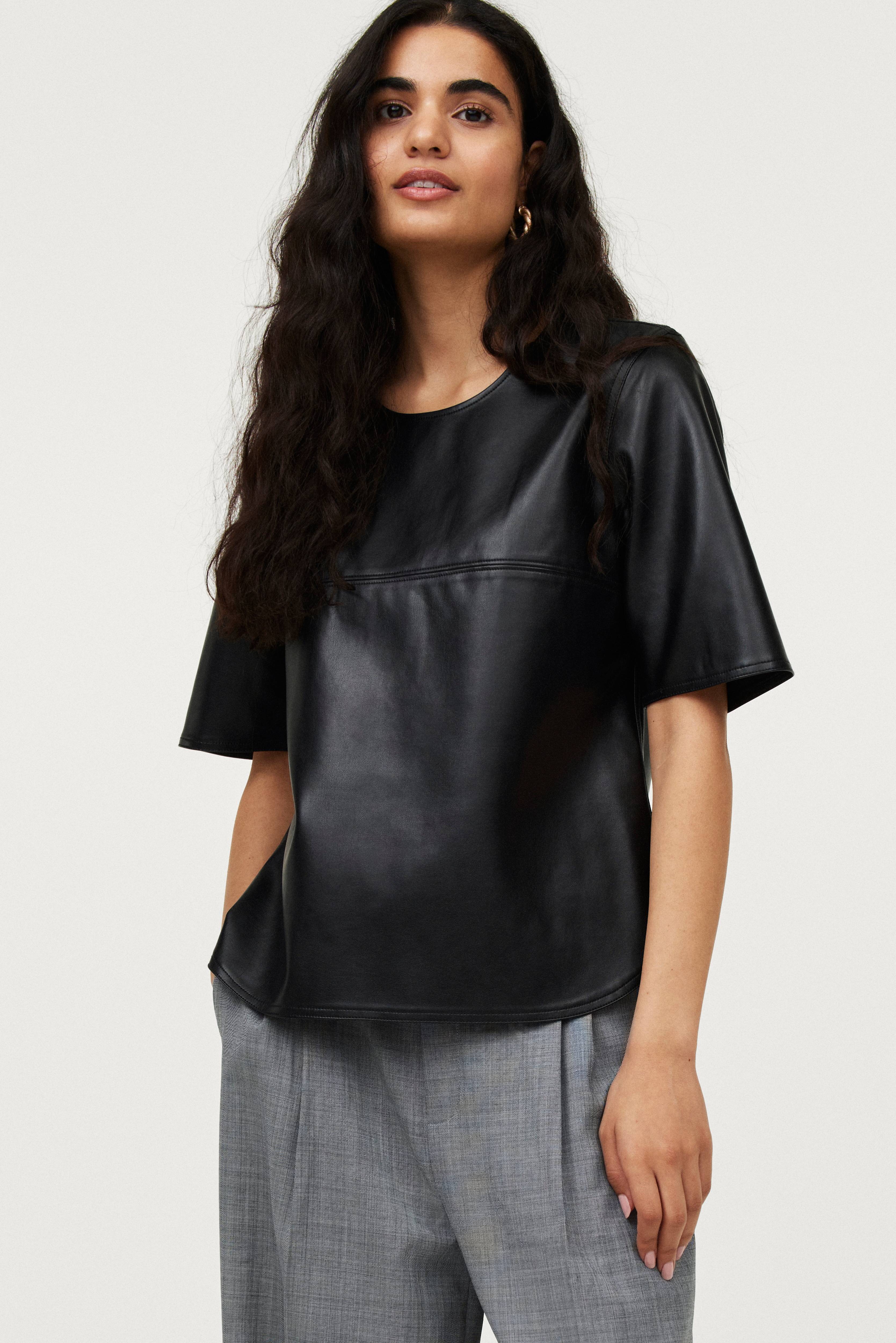 • Läderimitation• Rund halsringning med dragkedja• Dekorativa sömmar• Korta ärmar