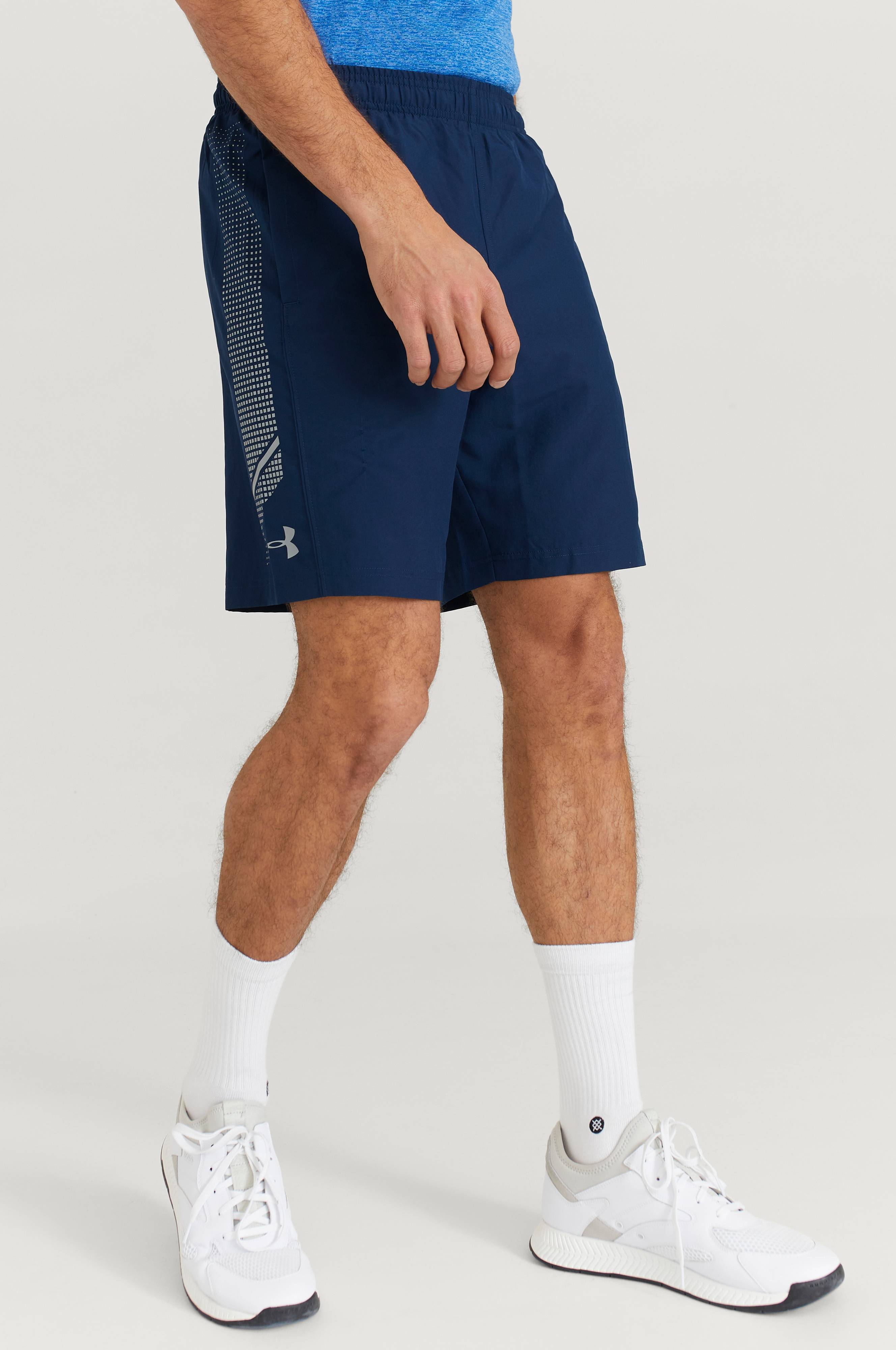 Träningsshorts UA Woven Graphic Shorts från Under Armour, lättviktiga vävda shorts i snabbtorkande HeatGear som andas och leder bort fukt. Lös, avslappnad passform. Resårlinning med invändig dragsko och fickor i sidorna. Gummerat tryck på sidorna. Ofodrade. Beninnerlängd ca 20 cm i stl M.
