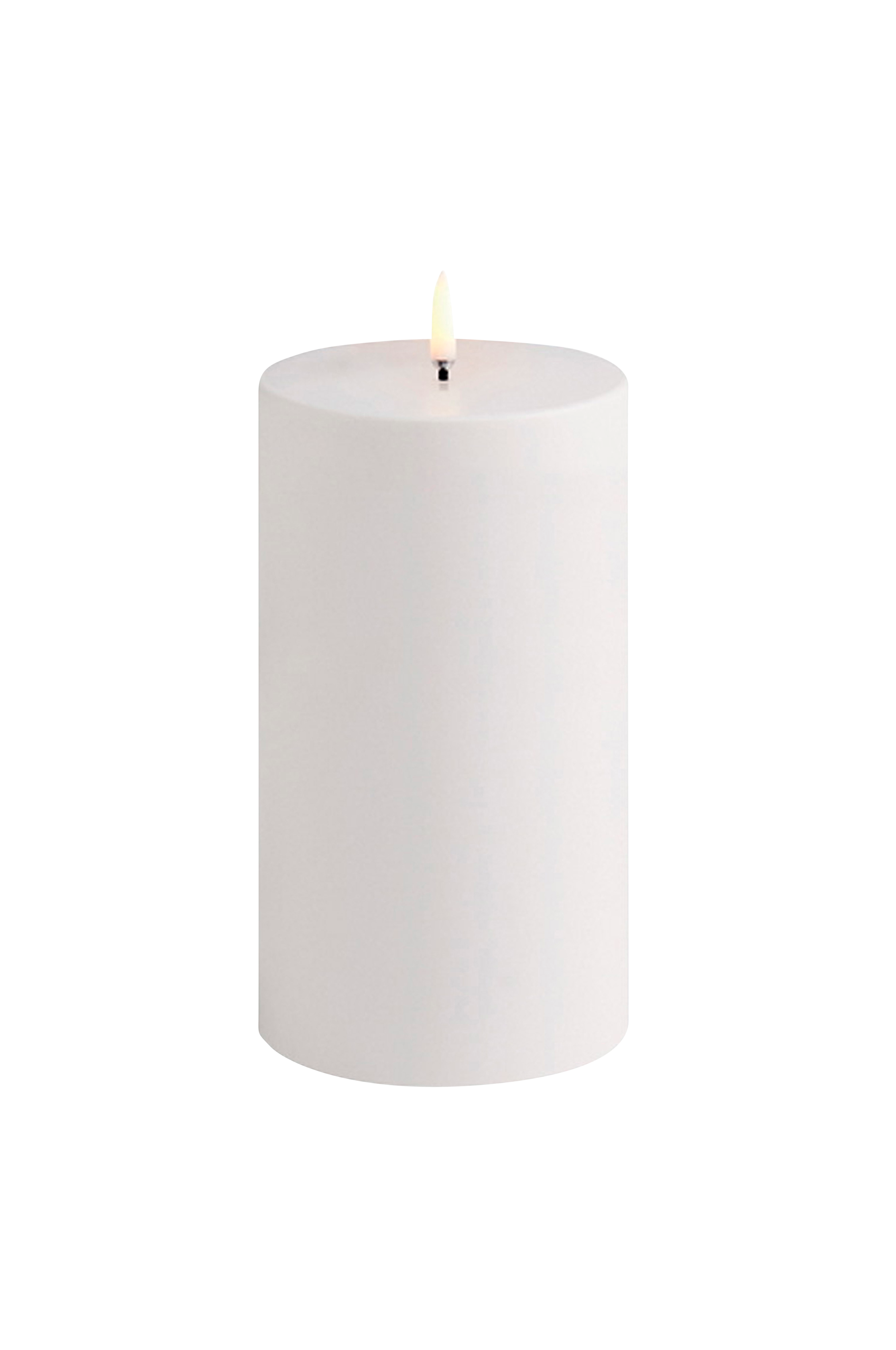 UYUNI LED-blockljus för utomhusanvändning. UYUNI-ljusen har ett mjukt fladdrande LED-ljus på toppen och denna modell har unikt skapad för att placeras utomhus. Du får den underbara atmosfären av tända ljus, utan några av de skadliga kemikalier som frisläpps från vanliga vaxljus. UV-skydd. Vattenresistent IPX5. Färg: Vit Batterier: 2 xC (ej inkl.) 1000+ h batteritid. Avger ingen doft. Inbyggd timer på 6 hr. Fler val med fjärrkontroll Dimbar i tre lägen. Fyra timeralternativ: 4, 6, 8 & 10 h (Fjärrkontroll köpes separat). Observera att Uyuni utomhusljus inte bör förvaras eller användas vid temperaturer lägre än -10°C eller över 40°C.