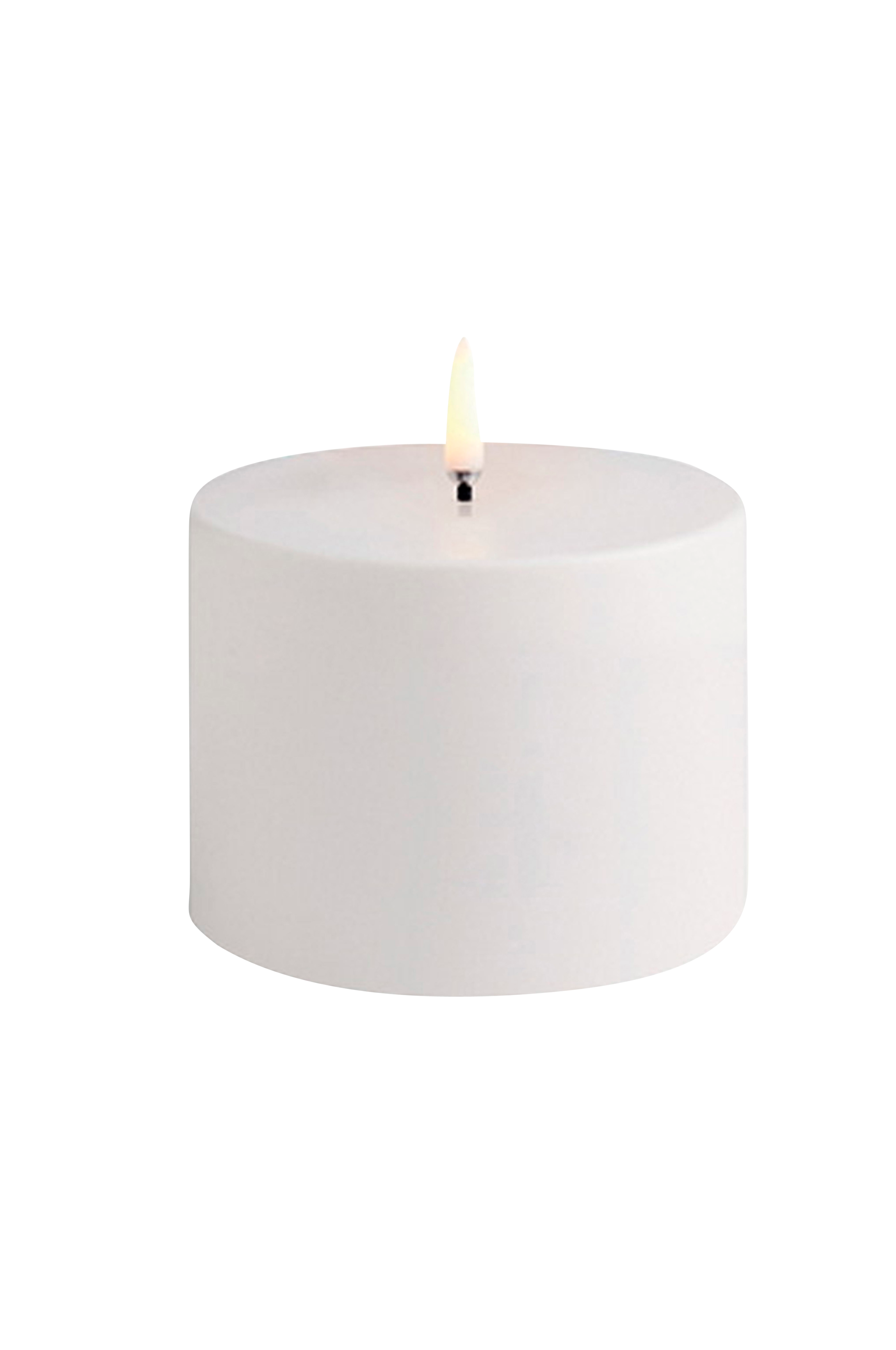 UYUNI LED-blockljus för utomhusanvändning. UYUNI-ljusen har ett mjukt fladdrande LED-ljus på toppen och denna modell har unikt skapad för att placeras utomhus. Du får den underbara atmosfären av tända ljus, utan några av de skadliga kemikalier som frisläpps från vanliga vaxljus. UV-skydd. Vattenresistent IPX5. Färg: Vit Batterier: 2 xC (ej inkl.) 1000+ h batteritid. Avger ingen doft. Inbyggd timer på 6 hr. Fler val med fjärrkontroll Dimbar i tre lägen. Fyra timeralternativ: 4, 6, 8 & 10 h (Fjärrkontroll köpes separat). Observera att Uyuni utomhusljus inte bör förvaras eller användas vid temperaturer lägre än -10°C eller över 40°C.