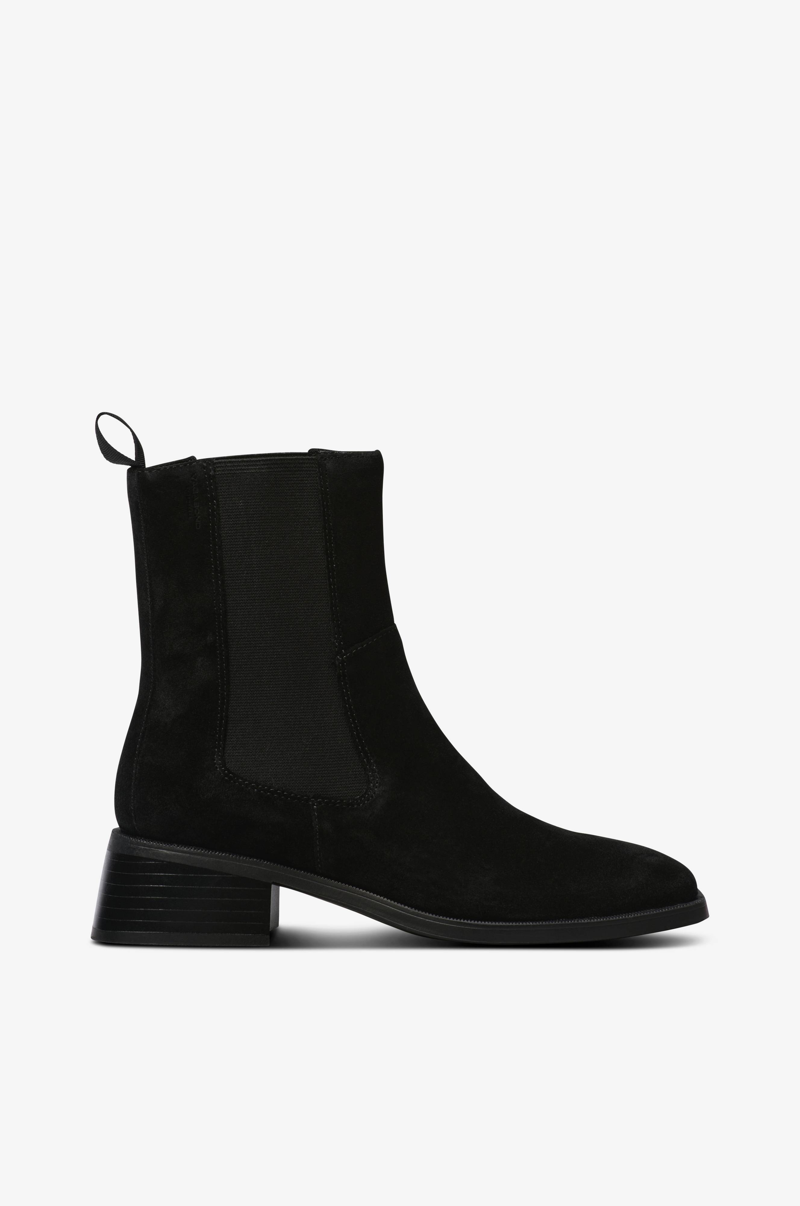• Modell i mocka• Kantig tå• Resårpaneler på skaftet• Draghälla bak• Textilfoder• Innersula i skinn• Skafthöjd: 16 cm i stl 37• Klackhöjd: 4,5 cm