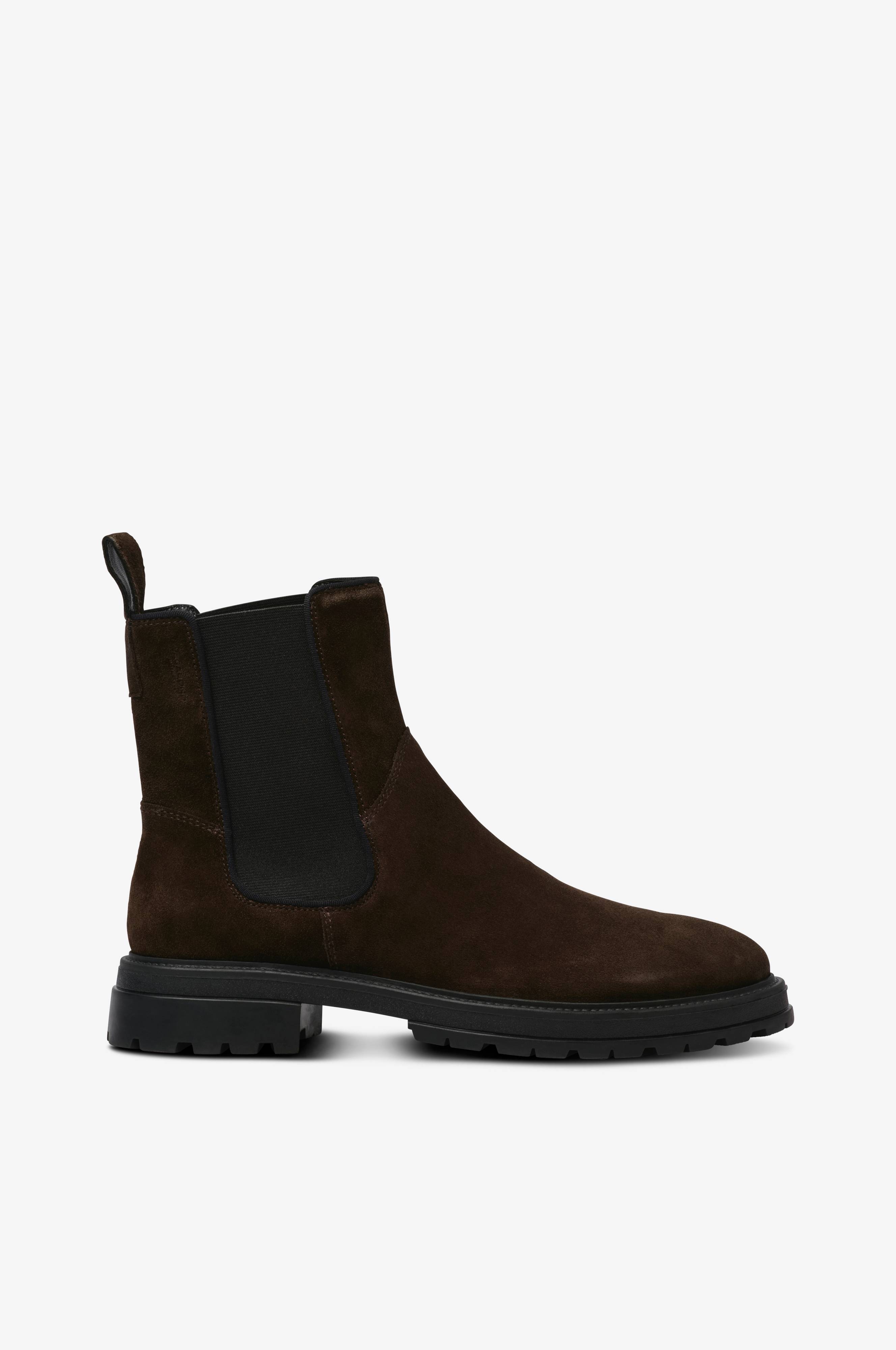 • Chelseaboots i mocka• Resårpaneler på skaftets båda sidor• Dragögla baktill• Textilfoder• Innersula i skinn• Mönstrad yttersula i gummi