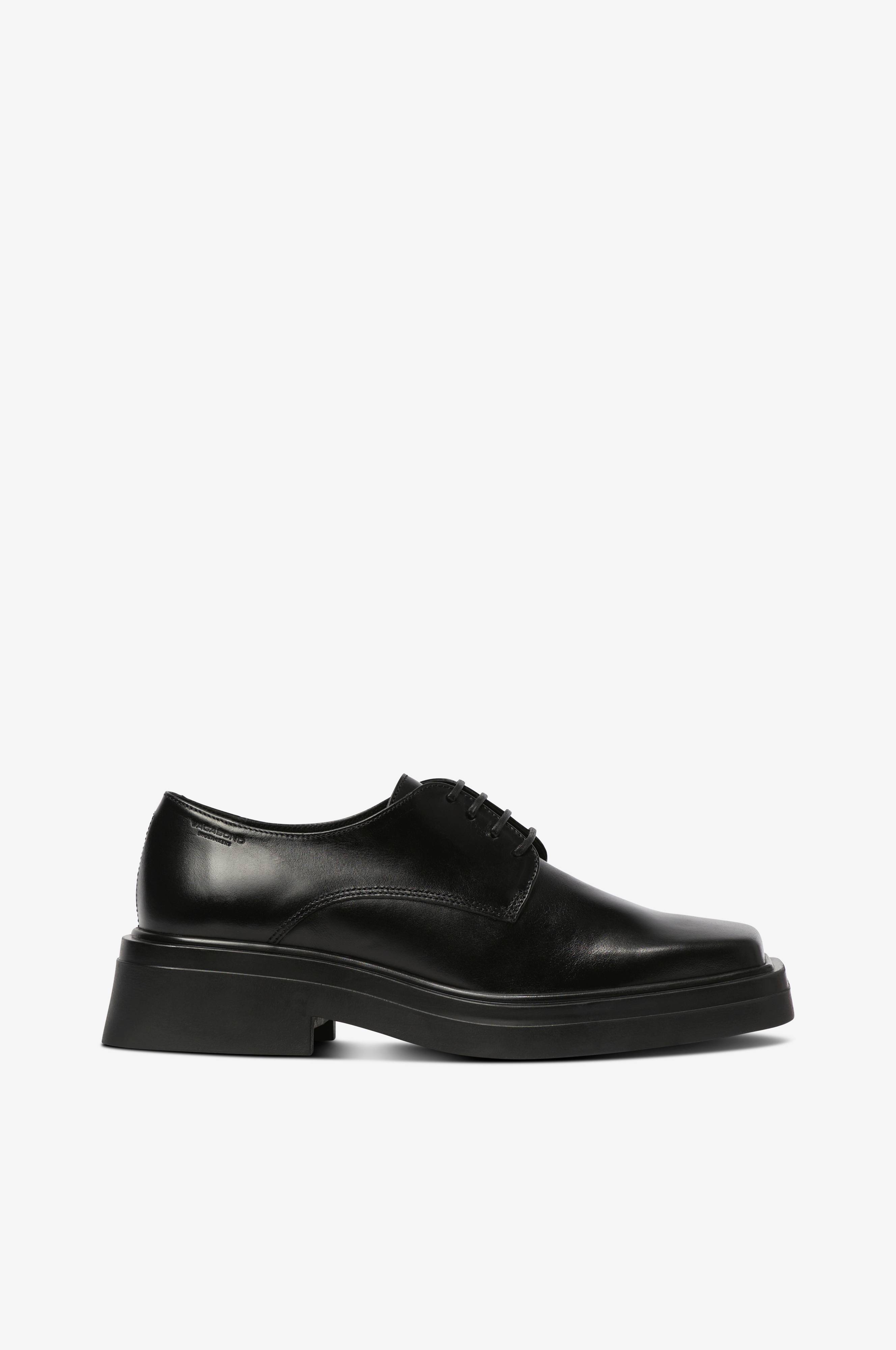 • Ovandel i skinn• Fyrkantig tåform• Snörning• Textilfoder• Innersula i skinn• Yttersula i gummi