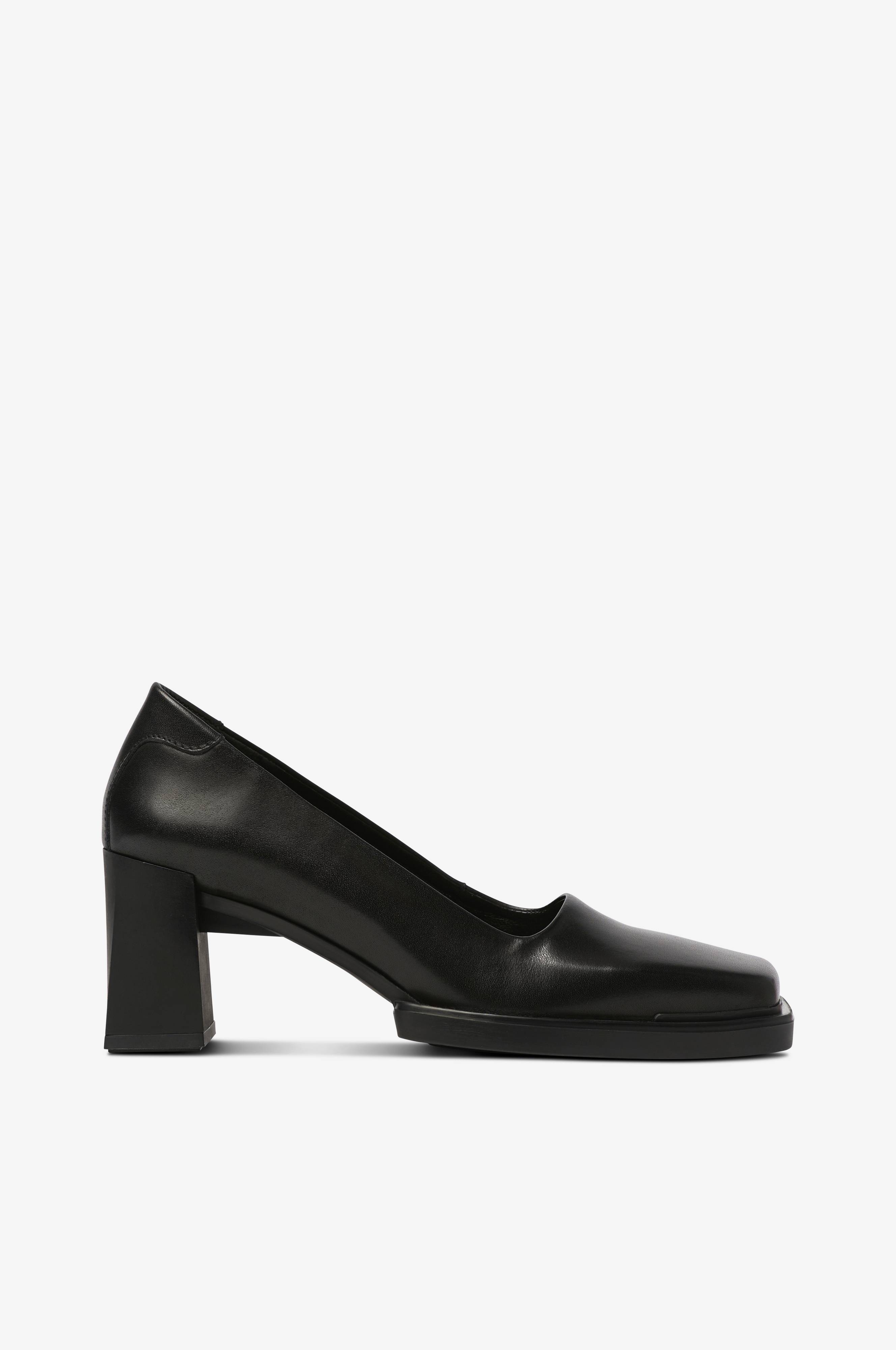 Retroinspirerade pumps med en kantig, modern siluett. Gjorda i slätt, fint läder. Fyrkantig tå och distinkt blockklack.
