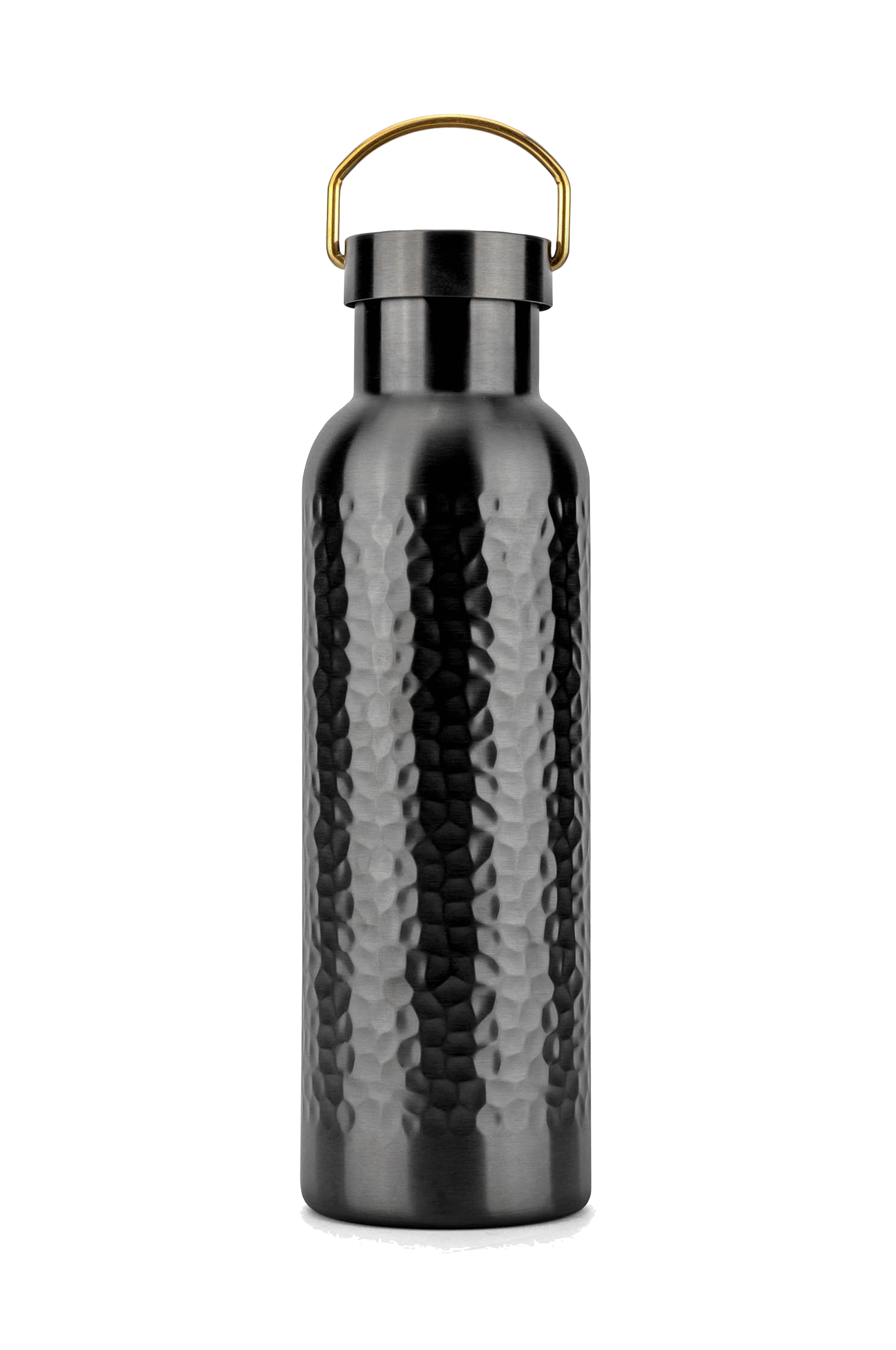 En 750 ml termos i genomtänkt design med mattsvart finish och mässingsdetaljer. Den är tillverkad helt i SS304-stål för hållbarhet och rostbeständighet, och dess isolering håller dryckerna vid önskad temperatur under längre perioder. Det säkra skruvlocket förhindrar läckage, vilket gör den idealisk för resor, utflykter eller kontorsanvändning.