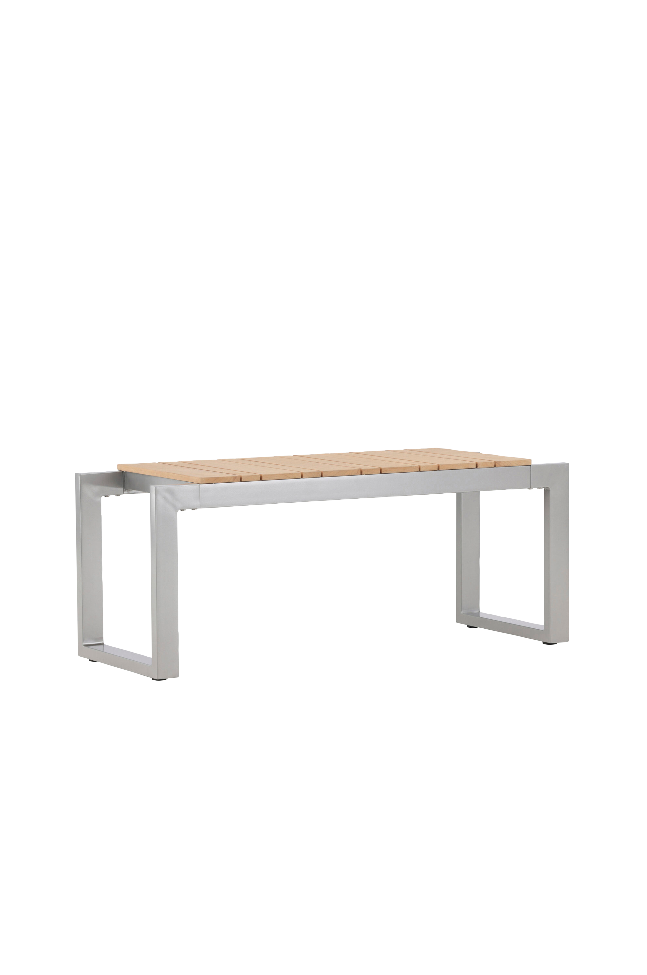 Upplev harmoni och enkel elegans med bänken Zenia. Denna eleganta bänk är inte bara en praktisk sittplats utan också en smakfull inredningsdetalj som förhöjer atmosfären i ditt hem eller din trädgård. Zenia-bänken är 100 cm lång och har en elegant aluminiumram som är färgad i en elegant nyans. Ramen ger bänken stabilitet, vilket gör den perfekt för både inomhus- och utomhusbruk. Sittytan är tillverkad av teakträ i sin naturliga färg. Teak är känt för sina vackra ådringar och väderbeständighet, vilket gör zenia-bänken lika vacker som den är praktisk. Teakens naturliga skönhet blandas harmoniskt med den moderna aluminiumramen, vilket resulterar i en bänk som passar olika inredningsstilar.
