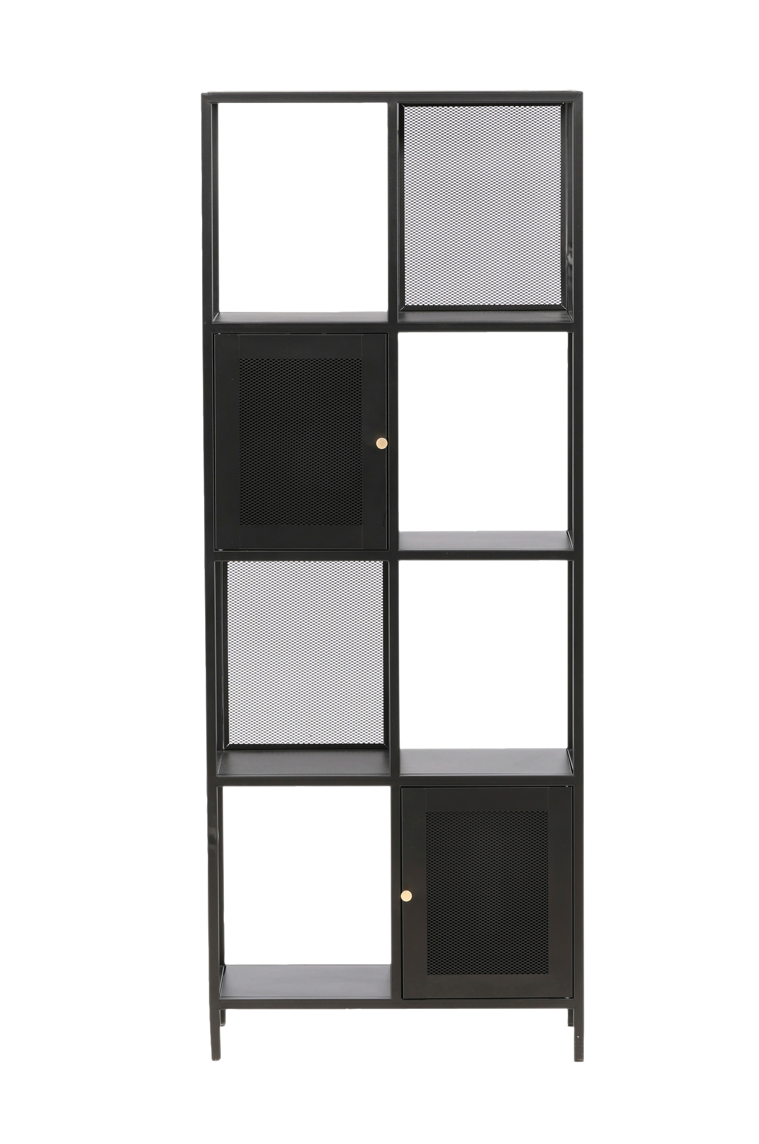 Möblera hemmet smart och snyggt med en hylla från serien Nett i läcker industriell design! Den här hyllan är tillverkad i svart stål med nätluckor som blir en smakfull detalj för ögat. Hyllan har fyra hyllplan med två luckor som skapar plats för semi-dold förvaring. Hyllan ger ett robust intryck och passar utmärkt för avlastning - pryd med dekorationer och skapa ett blickfång som imponerar! De smala, höga benen som lyfter upp skåpet skapar en luftig känsla och underlättar även för dammsugaren. Njut av en smart möbel!