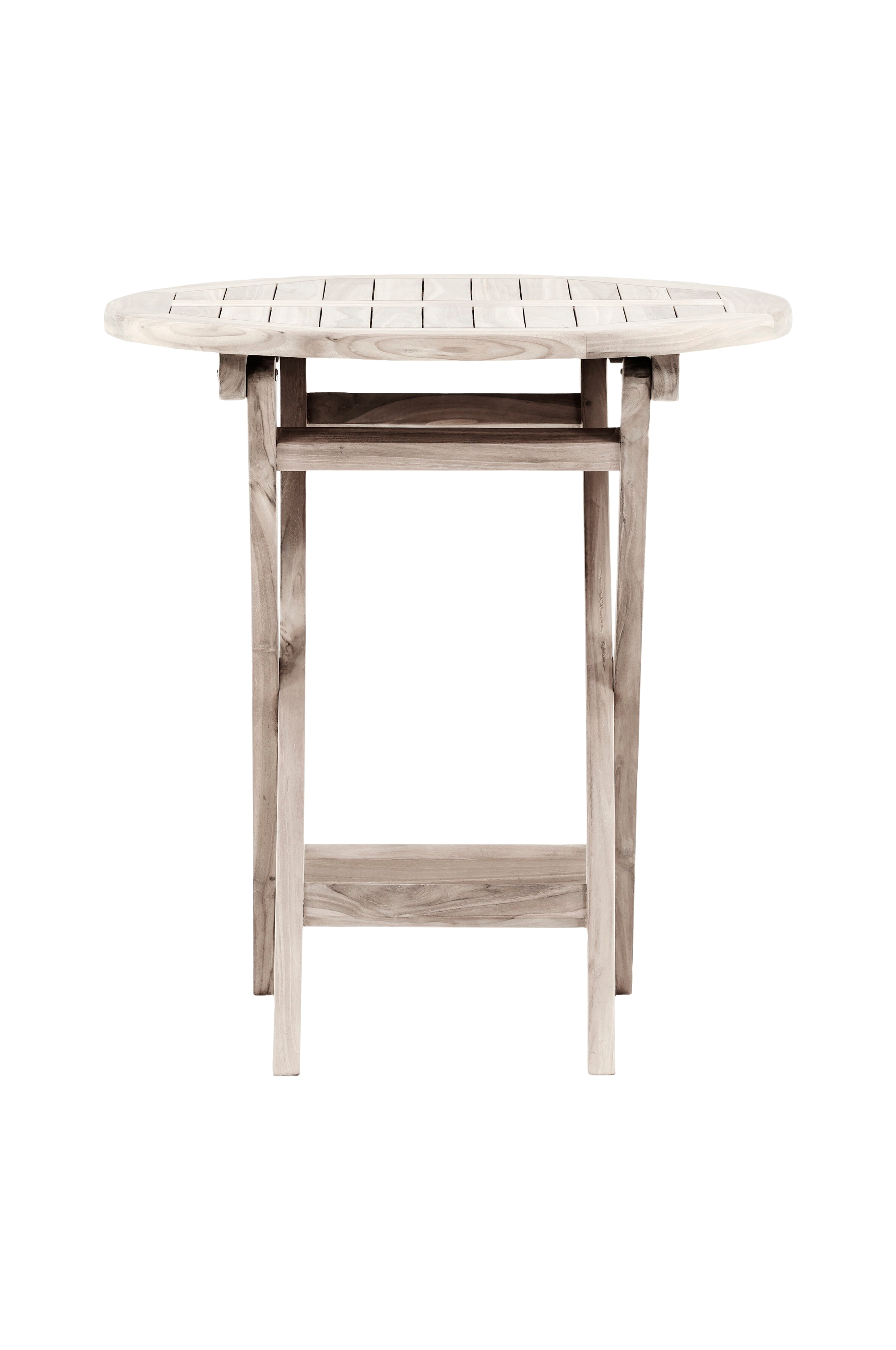 Kenya är ett elegant cafébord med en diameter på 70 cm, perfekt för mindre utrymmen som balkonger eller mysiga hörn på uteplatsen. Bordet är tillverkat av hållbar teak med en vacker whitewash-finish och kombinerar naturlig charm med modern design.