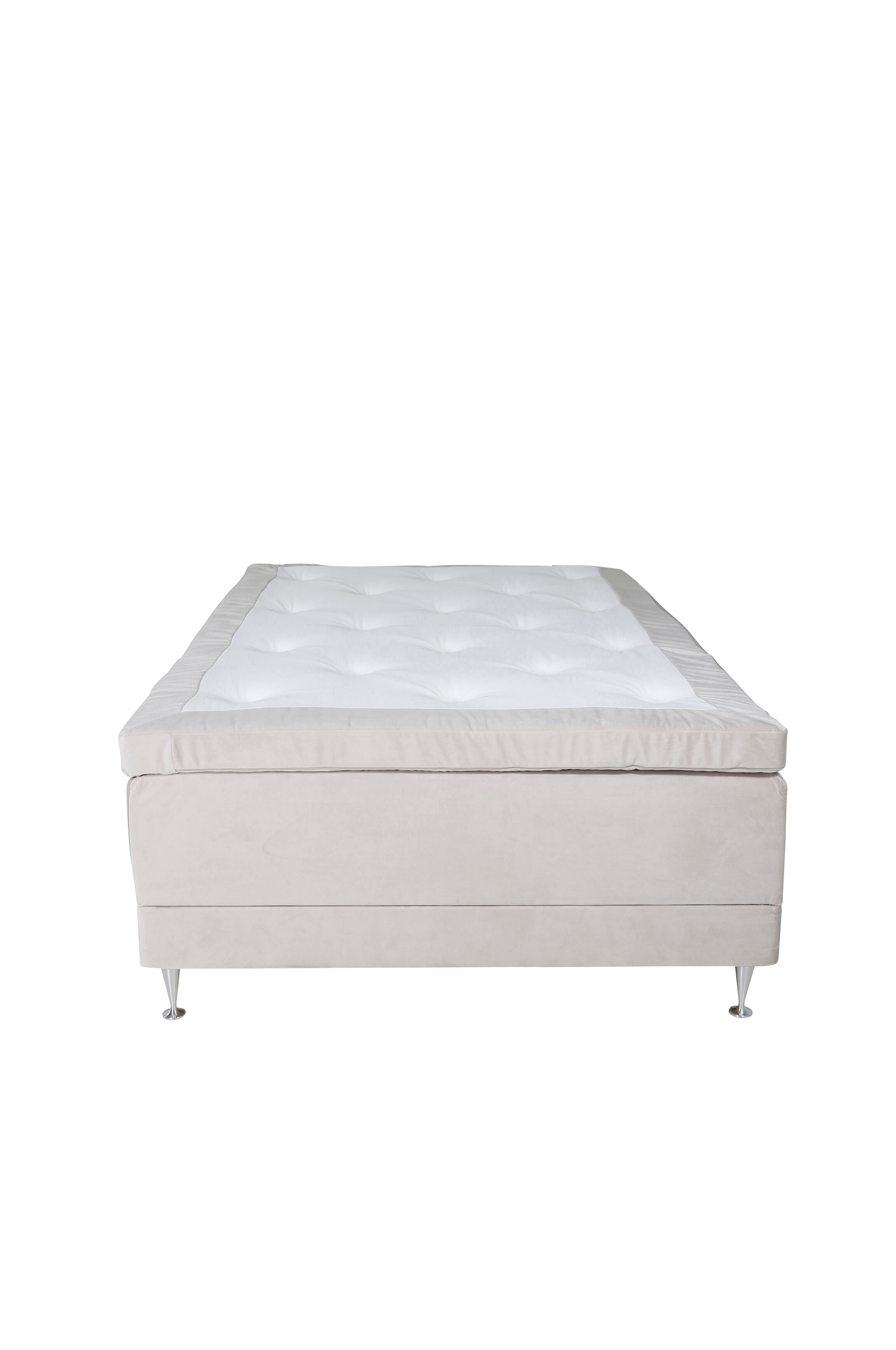 Sammantaget är sängen uppbyggd för att ge en skön sovkomfort samt ge ett enhetligt intryck i sin helklädda design. Hela sängen vilar på champangeben i silvrig aluminium. Lättare montering krävs. Garanti: 10 år. Sänggavel kan köpas till separat. 10 år på ram och fjäder brott
