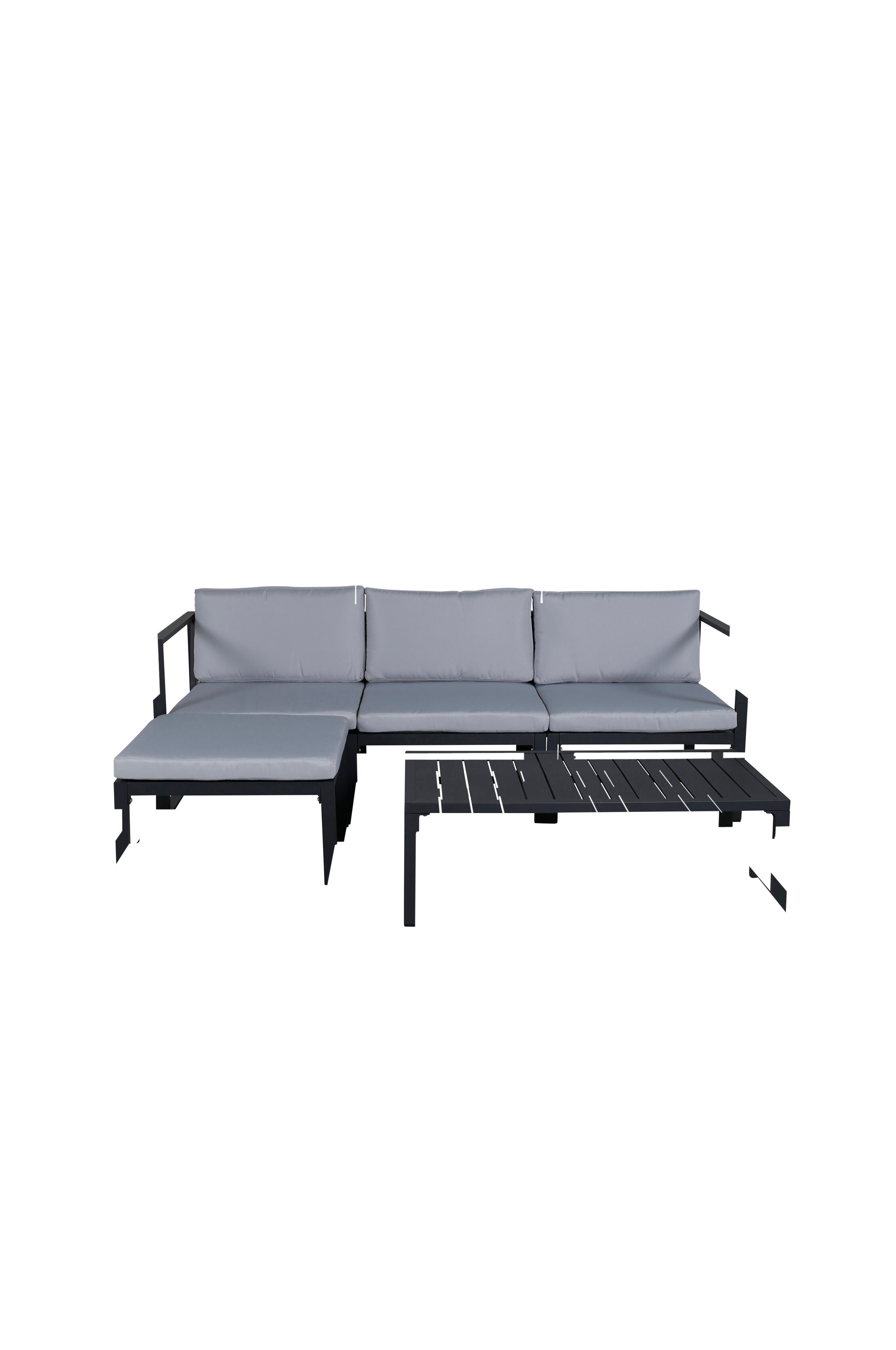 Salvador är en stilren soffgrupp i en snygg och enkel design. Soffgruppen består av en tresits soffa med divandel samt ett soffbord. Tillverkad i pulverlackerad metall och aluminium - enkelt att sköta och tåligt för utomhusbruk! Mjuka ljus dynor inkluderas till soffgruppen. Soffan är uppbyggd av moduler som gör att den kan anpassas precis som du vill ha den, perfekt för att skapa din egna charmiga oas på uteplatsen!