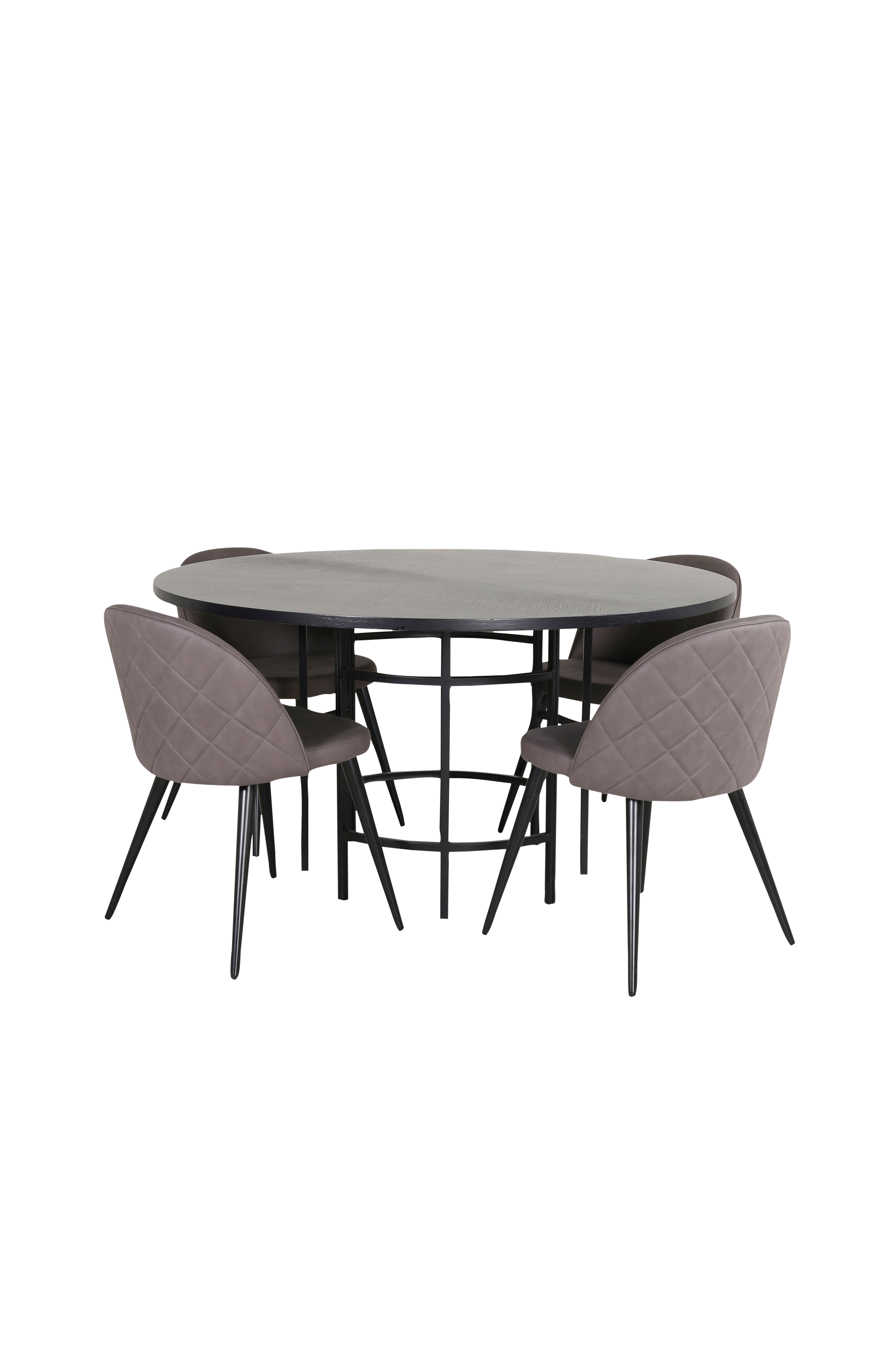 Copenhagen matbord med en rund bordstopp i MDF med faner och bordsben i metall. Matchas med 4 st Velvet Stitches matstolar med dekorsöm och med stolsits i mikrofiber och stolsben i järn. Bord och stol kräver enklare montering. Bordets mått: Diameter: 140 cm, höjd: 74 cm. Stolens mått: Sittdjup: 42,5 cm, sittbredd: 41 cm, sitthöjd: 46,5 cm.