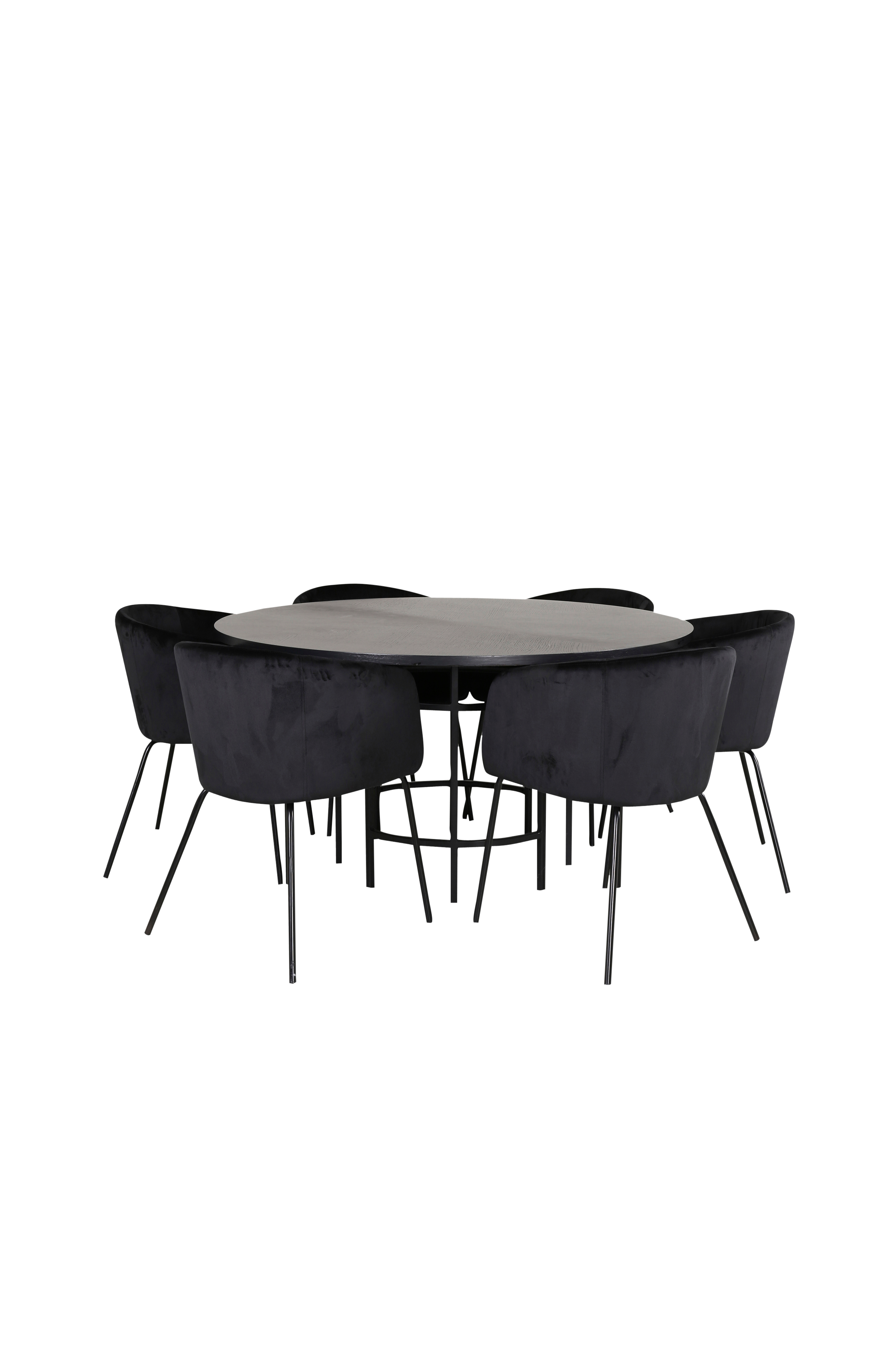 Copenhagen matbord med en rund bordstopp i MDF med faner och bordsben i metall. Matchas med 6 st Berit matstolar med stolsits i sammet och stolsben i järn. Bord och stol kräver enklare montering. Bordets mått: Diameter: 140 cm, höjd: 74 cm. Stolens mått: Sittdjup: 45 cm, sittbredd: 55 cm, sitthöjd: 49 cm.