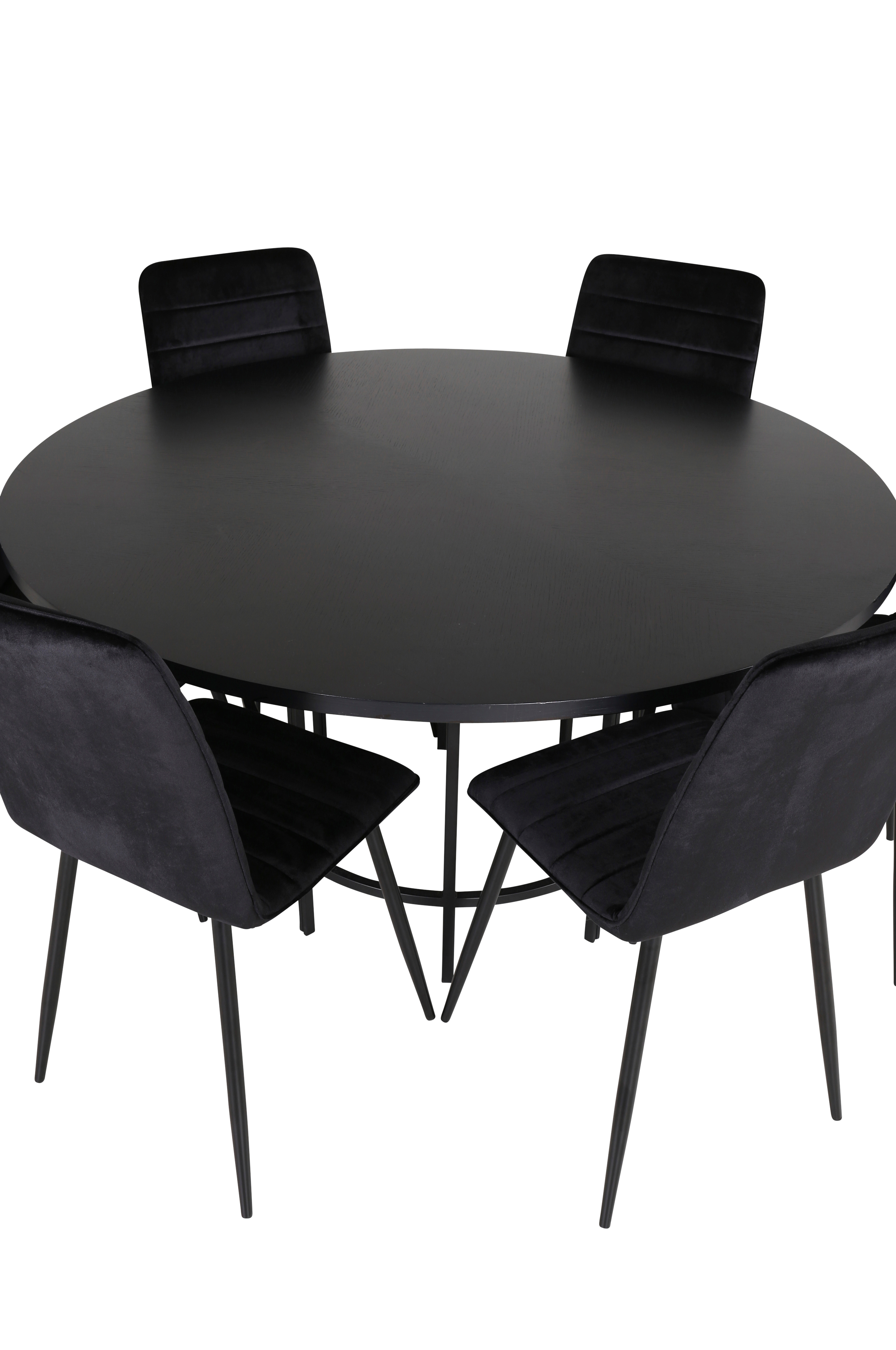 Copenhagen matbord med en rund bordstopp i MDF med faner och bordsben i metall. Matchas med 6 st Windu Lyx matstolar med stolsits i mikrofiber och stolsben i järn. Bord och stol kräver enklare montering. Bordets mått: Diameter: 140 cm, höjd: 74 cm. Stolens mått: Sittdjup: 37 cm, sittbredd: 41 cm, sitthöjd: 47 cm.