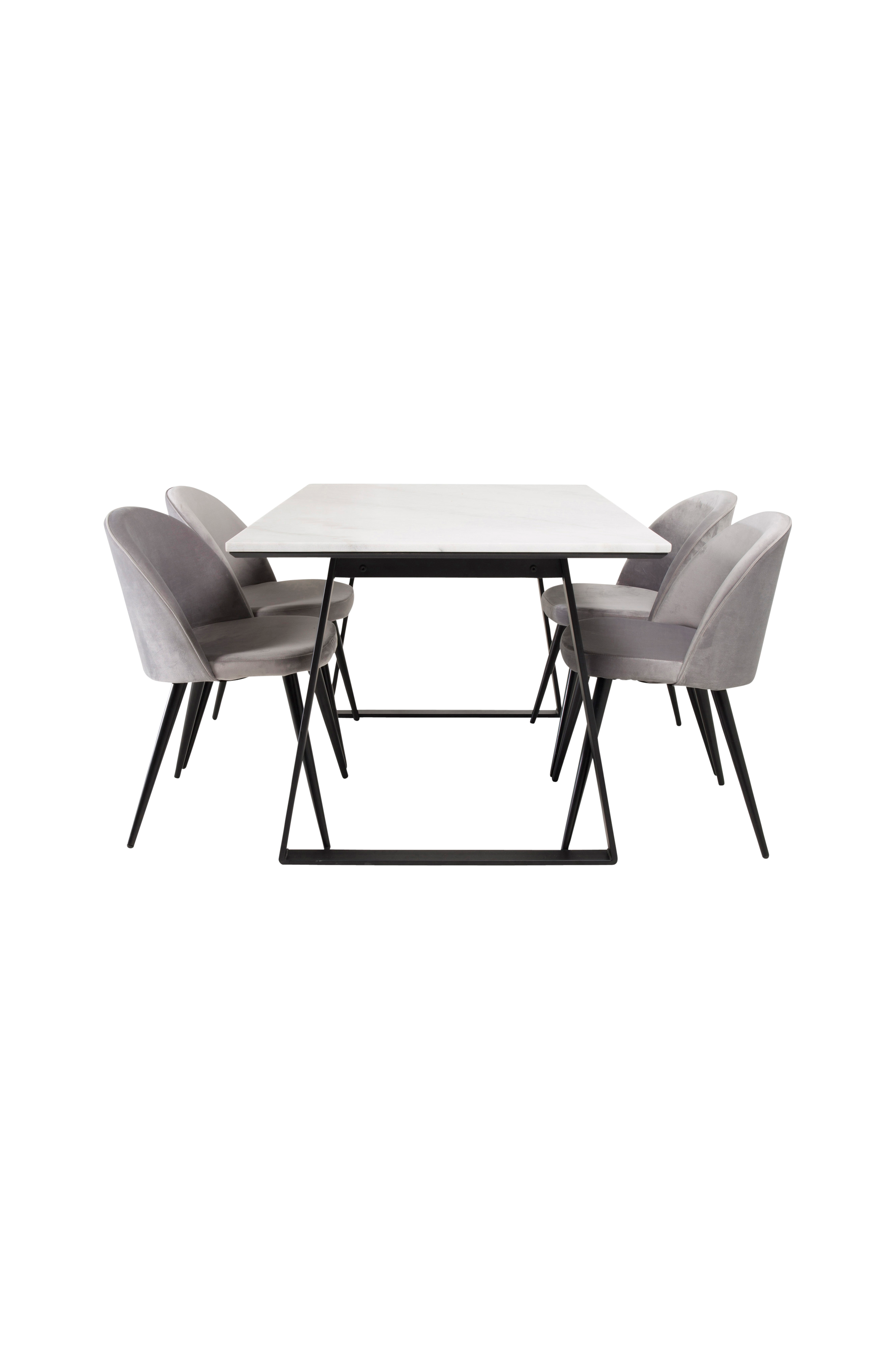 Att kombinera olika färg och olika material på stolar och bord gör många gånger stor succé. Her får du ett elegant matbord från Estelle och Venture Designsmatstolar från serein Velvet – modernt, bekvämt och tidlöst.