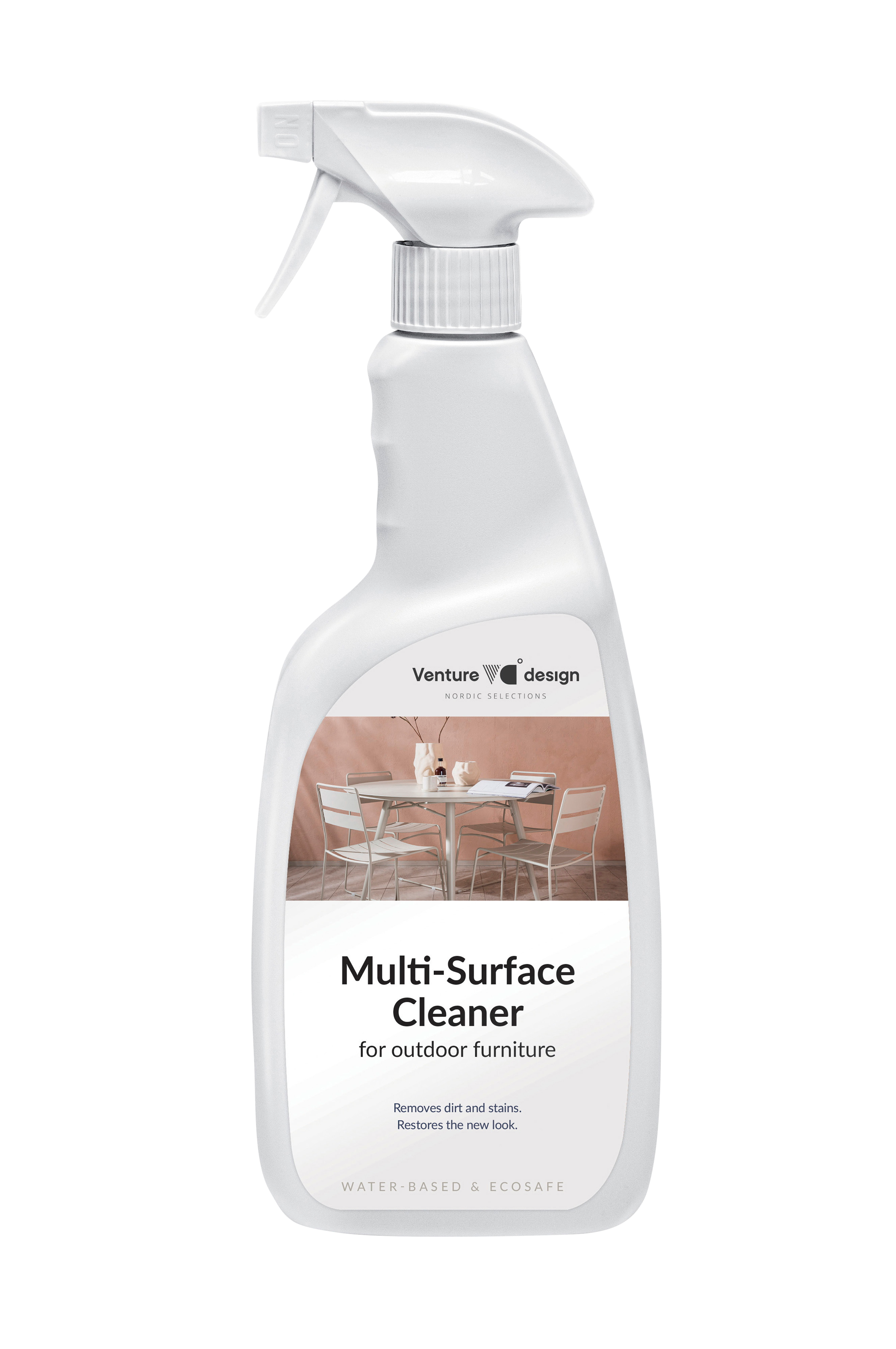 Detta rengöringsmedel är för flera sorters ytor och kan användas på aluminium, sten, rostfritt stål, rotting, hpl, polywood och andra hårda material. Rengöringsmedlet är lätt att applicera och tar aktivt bort smuts och fläckar som uppkommit vid användning. Ge dina möbler ett nytt liv och återställ utséendet genom att tvätta möblerna regelbundet, minst en gång per säsong, för att smutset inte ska sätta sig. Rengöringsmedlet är vattenbaserat och slutar klibba efter 30 minuter och verkar vattenavvisande efter 48 timmar. 750 ml.