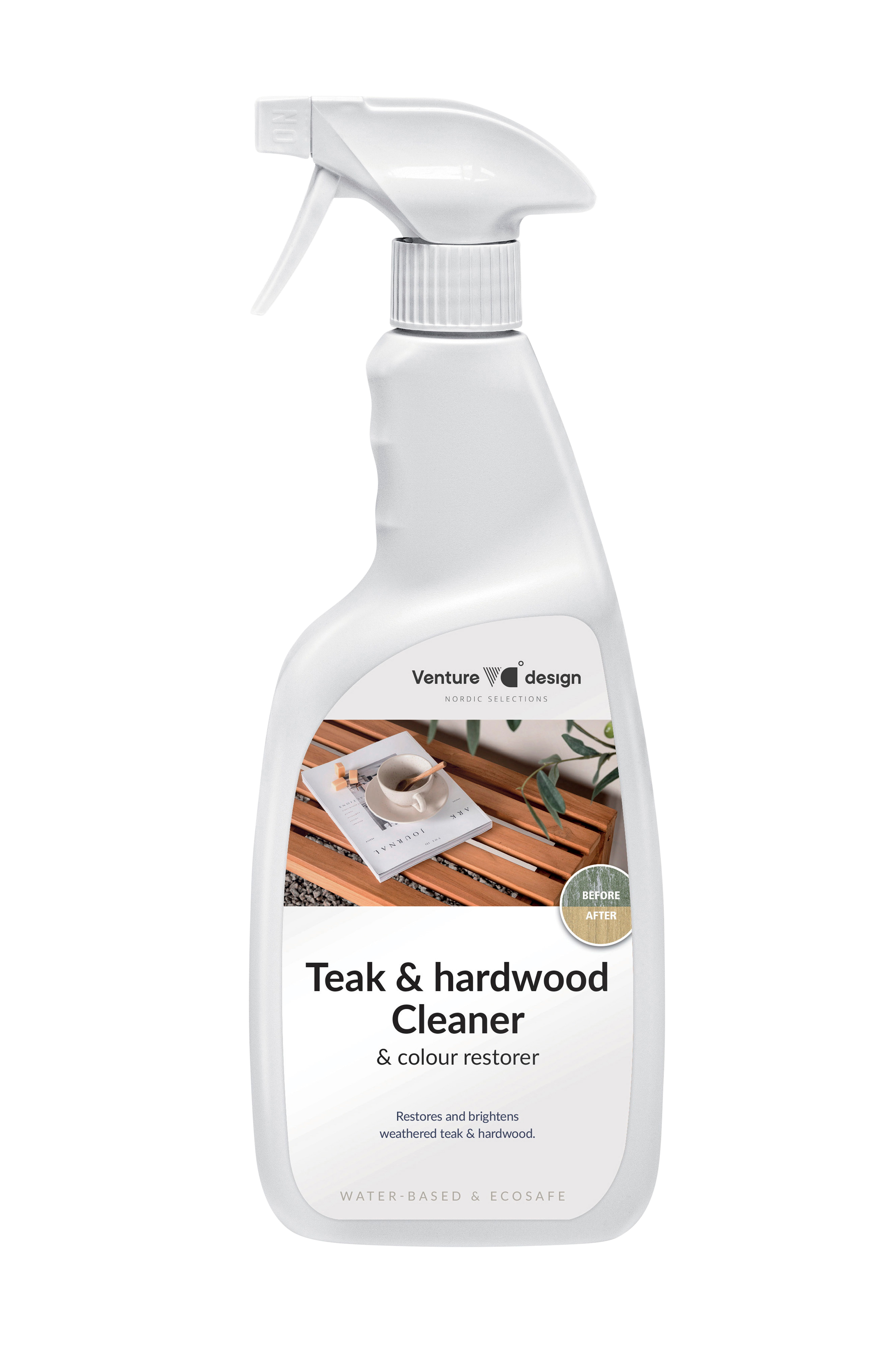 Ett vattenbaserat rengöringsmedel som enkelt rengör och återställer missfärgad teak och hårdträ och ger dina möbler ett längre liv! Färgen är transparant och hjälper också till att återställa möblerna till den ursprungliga färgen. Ett praktiskt rengöringsmedel som slutar klibba efter 30 minuter och är vattenavvisande efter 48h. 750ml.