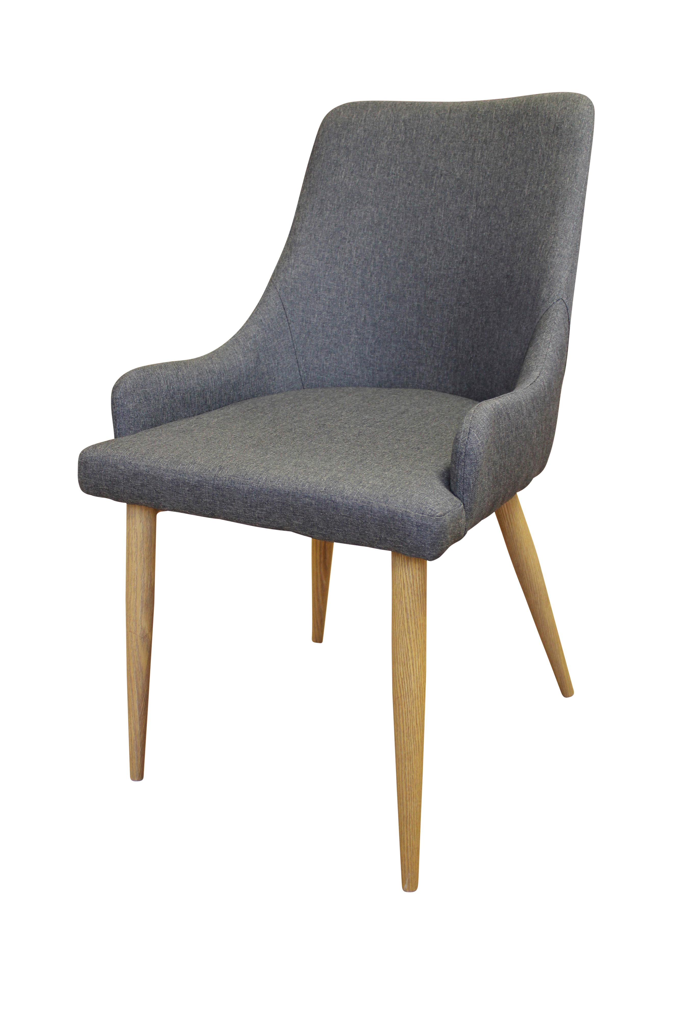 Modern och skön matstol. Stabil stol med metallben med ek-look. Höjd: 86 cm, Djup: 60 cm, Sitthöjd: 47 cm, Sittdjup: 45,5cm, Bredd: 50
