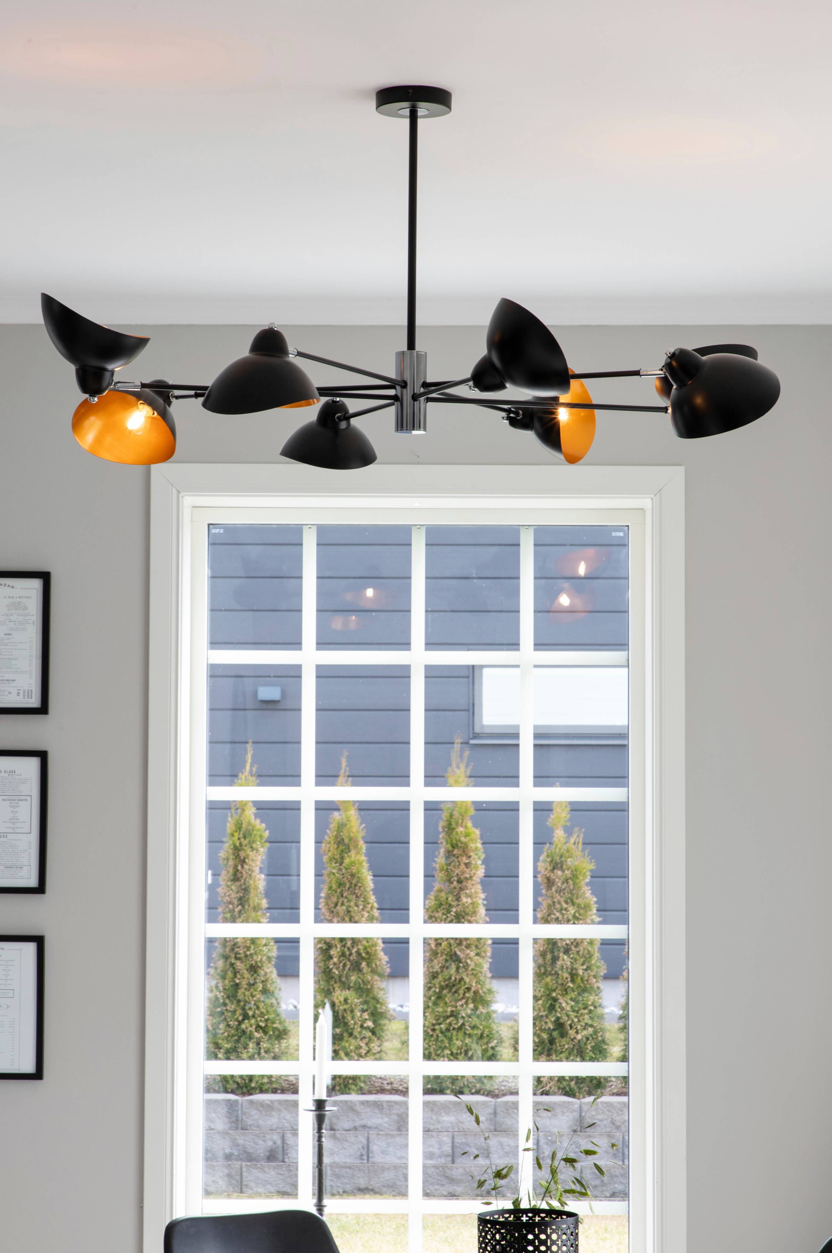 Elton taklampa i järn med åtta ljuskällor. Enklare montering krävs. Ljuskälla ingår ej.