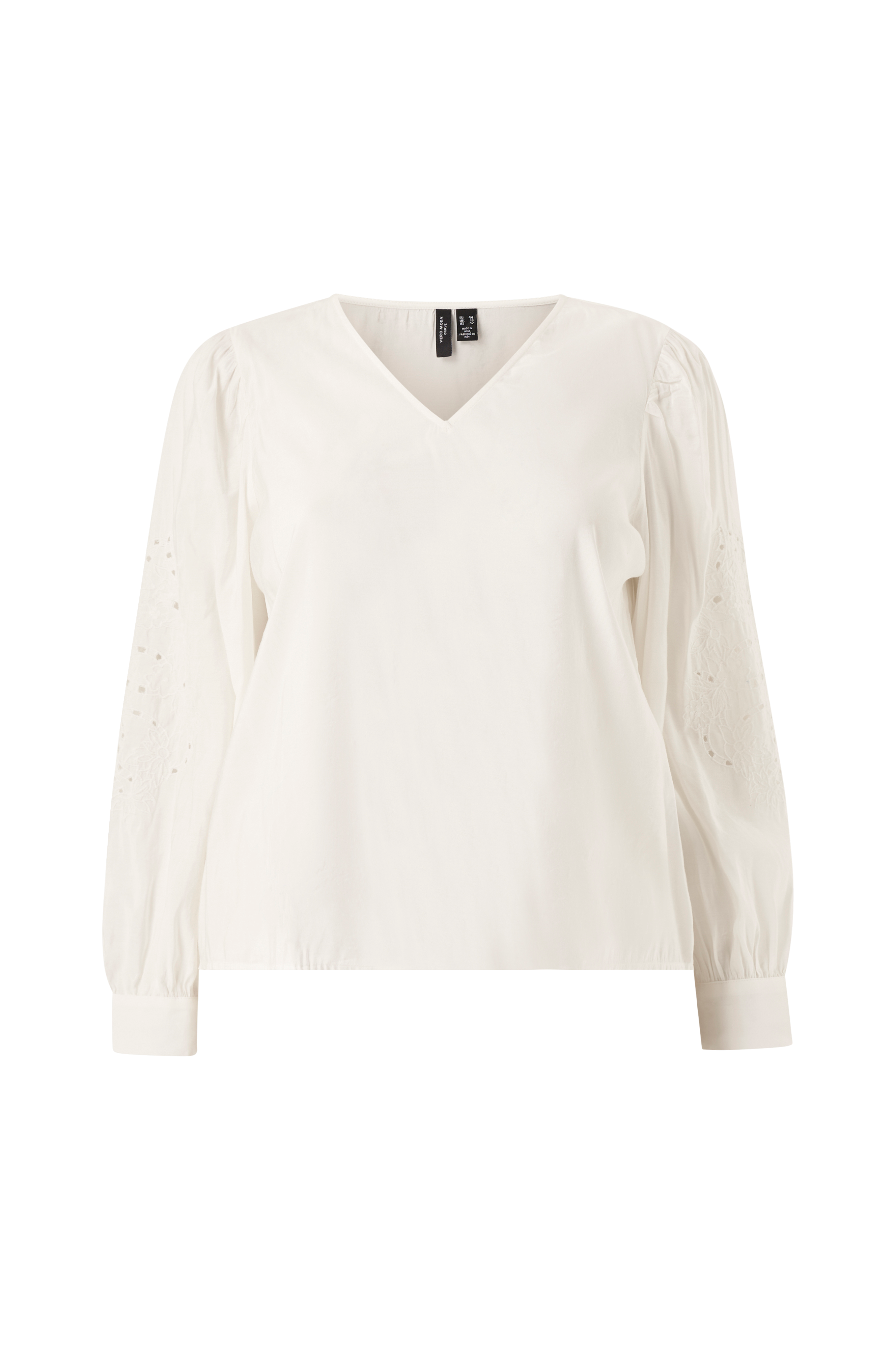 • Plusstorlekar• Rak, ledig modell• V-ringad hals• Ärm med hålbroderi och manschett med klädda knappar